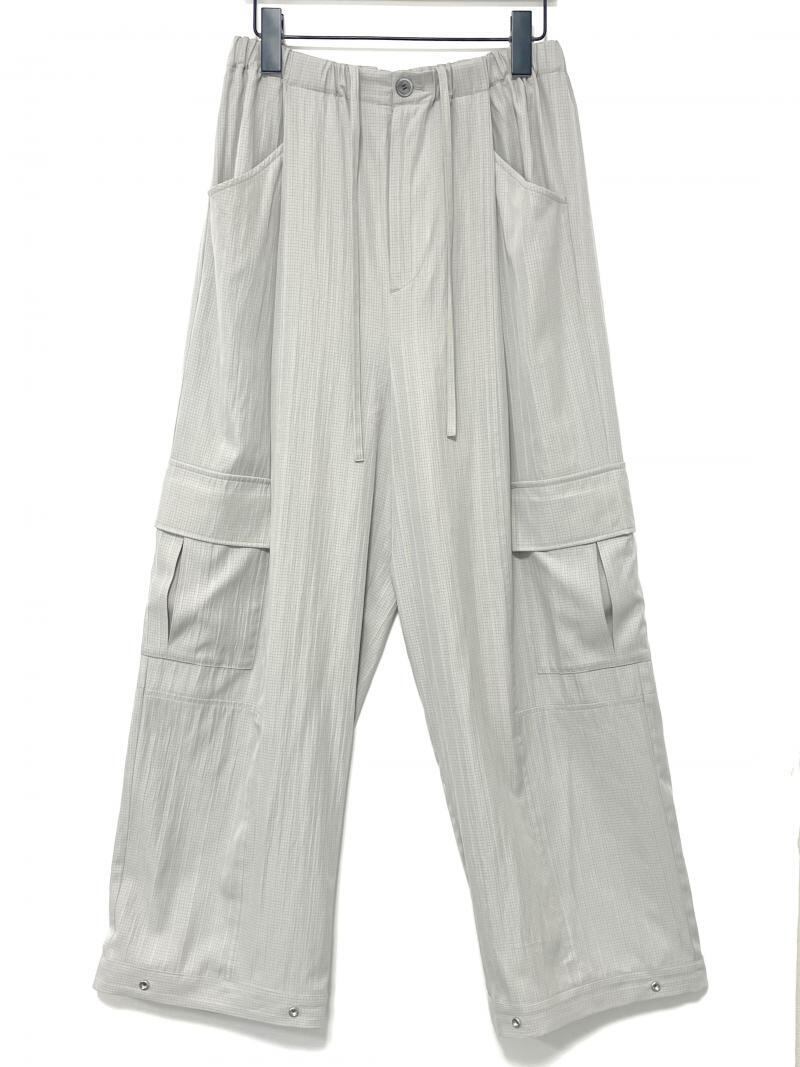リップストップ生地にストライプの織が入った生地が特徴的なカーゴパンツです。