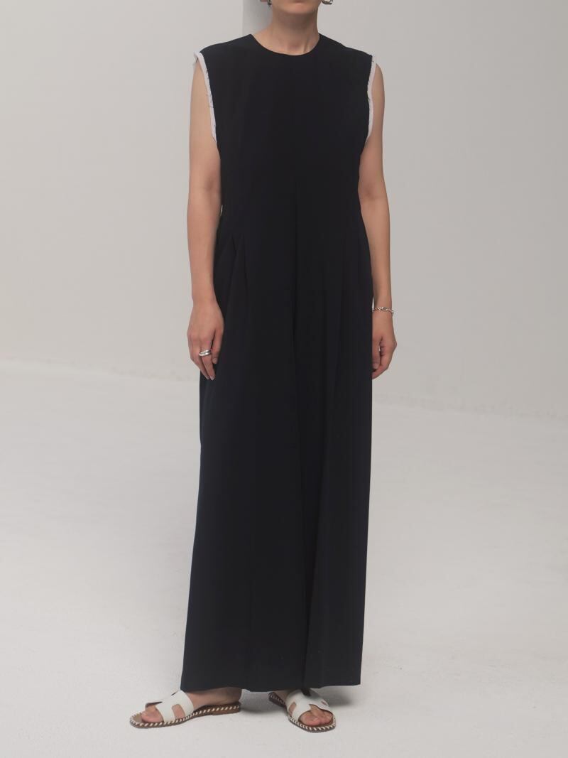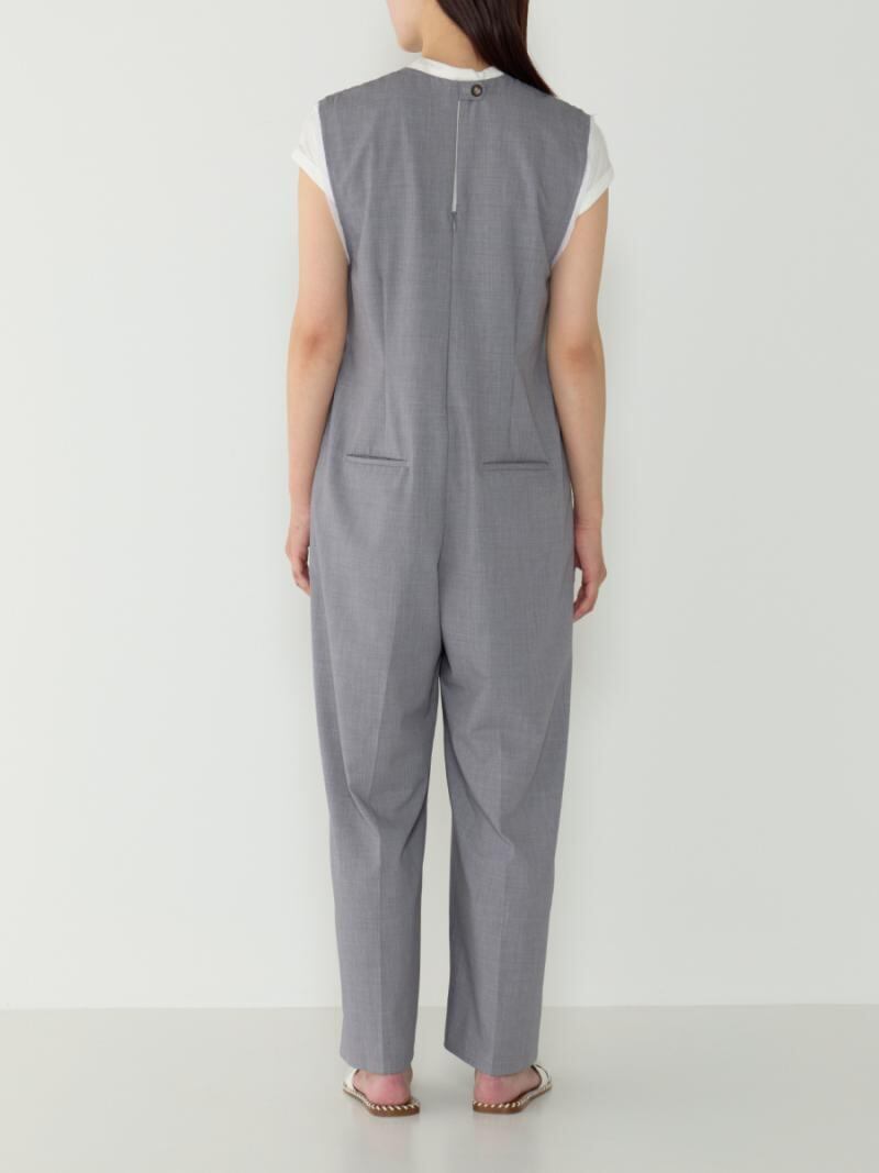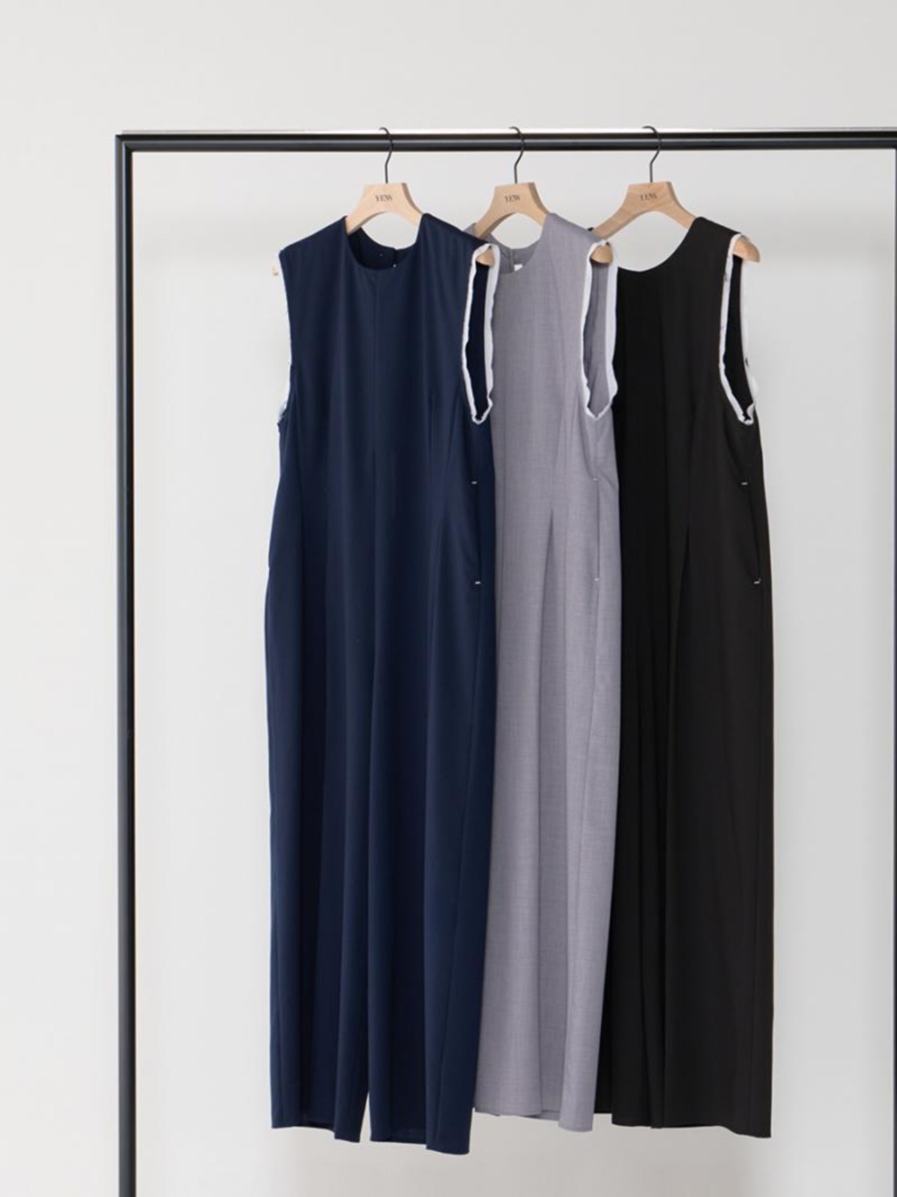 昨年人気だった2TUCK WIDE PANTSと同素材を使用、裏地無しで着用できるぎりぎりの薄さの生地は夏でも涼しくおすすめの素材になります。 シェイプされたウエストとワイドシルエットのパンツのコントラストが特徴のシルエットで、アームホールに施した配色の断ち切りデザインがモード感をプラスしています。 ミニマルながらもしっかりデザインの入ったコンビネゾンは1枚で完結できるので、ワンピースが苦手なパンツはのお客様におすすめです。