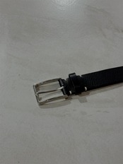 バックル止めに施した配色ステッチと、ベルト先の“NN”のロゴ刻印がデザインポイントになっています。