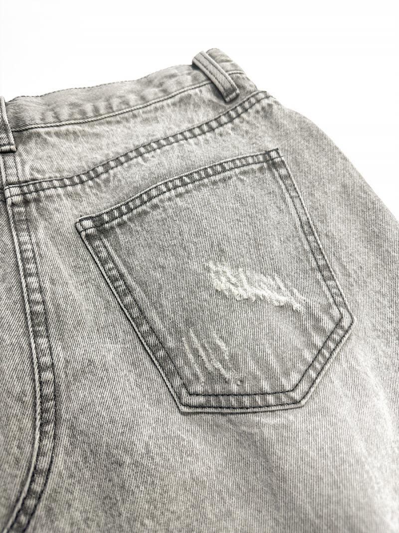 所々に施したさりげないダメージ加工、裾のカラーグラデーションと切り込みホールデザインがポイントです。