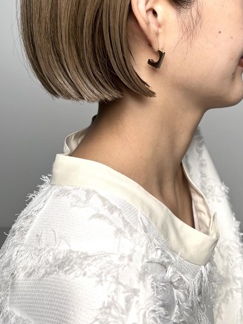 コンパクトなスクエアデザインがポイントのピアスになります。どんなスタイリングにも万能なアイテムです。シャープな印象でモードな雰囲気に仕上げてくれます。