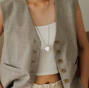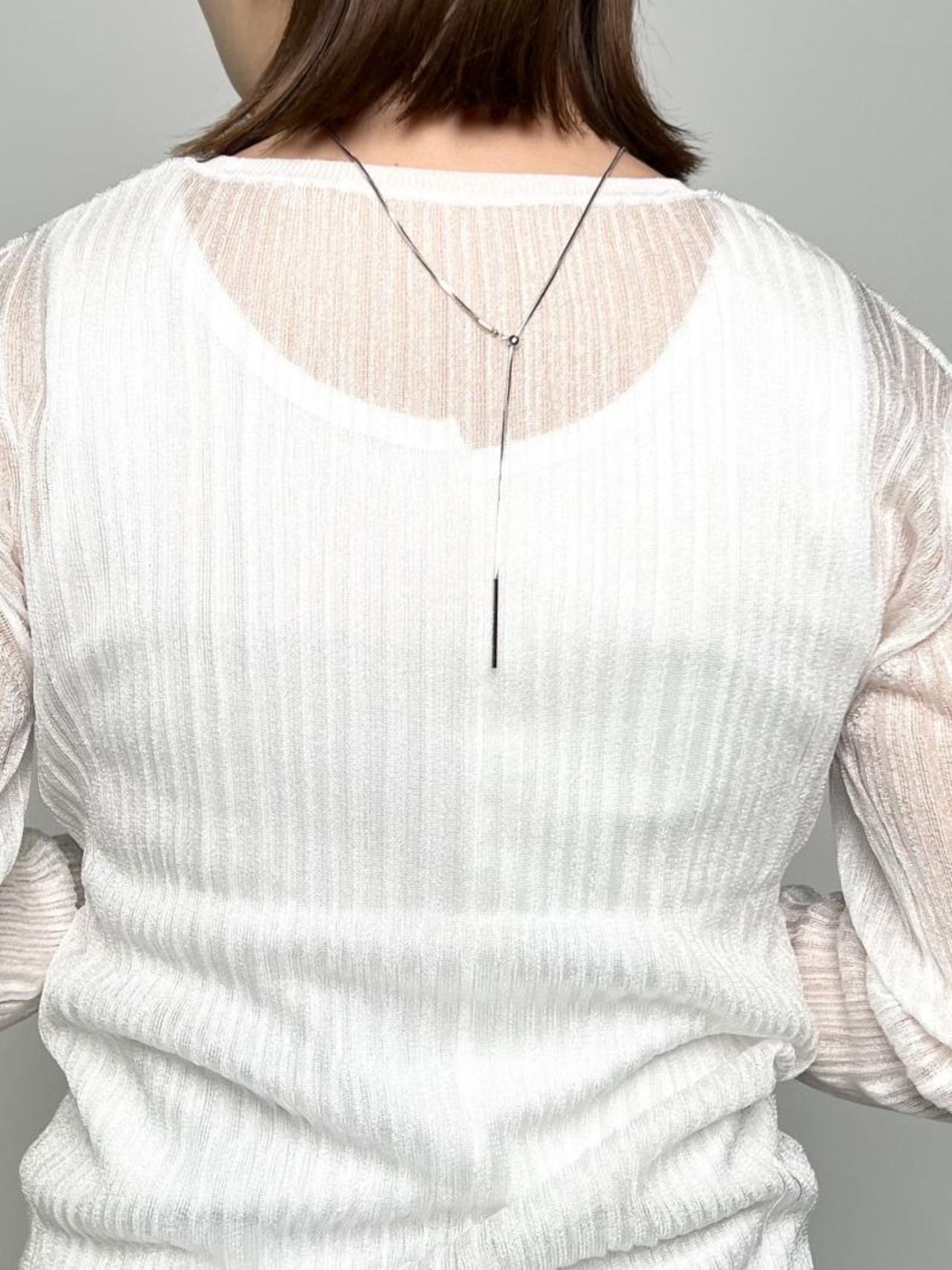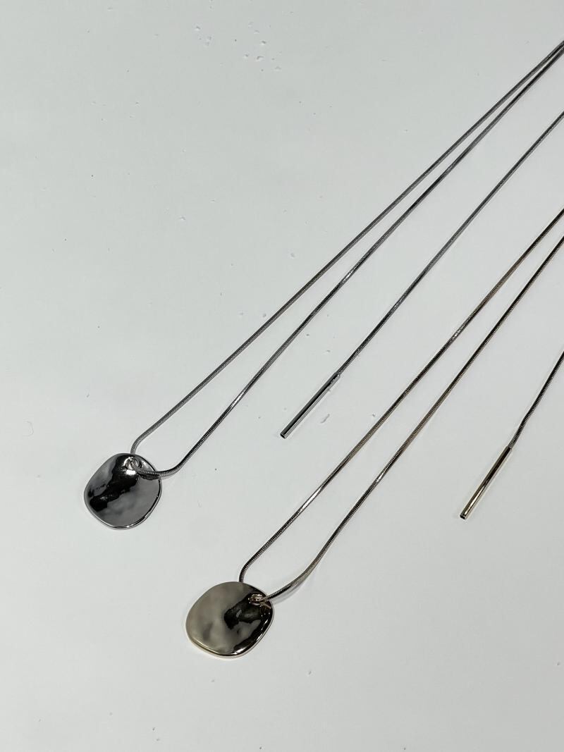 ラウンドメタルがポイントになったネックレス。華やかすぎずコーディネートに溶け込んでくれるアイテムです。長さ調節可能なのでスタイリングに合わせてお使い頂けます。バックスタイルもアクセントになるのでシアー素材や背中あきのトップス合わせおすすめです。