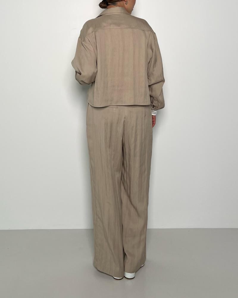 落ち感のあるリヨセルブレンドのツイル素材をセレクト。ハイウエスト設計で脚長効果をもたらします。