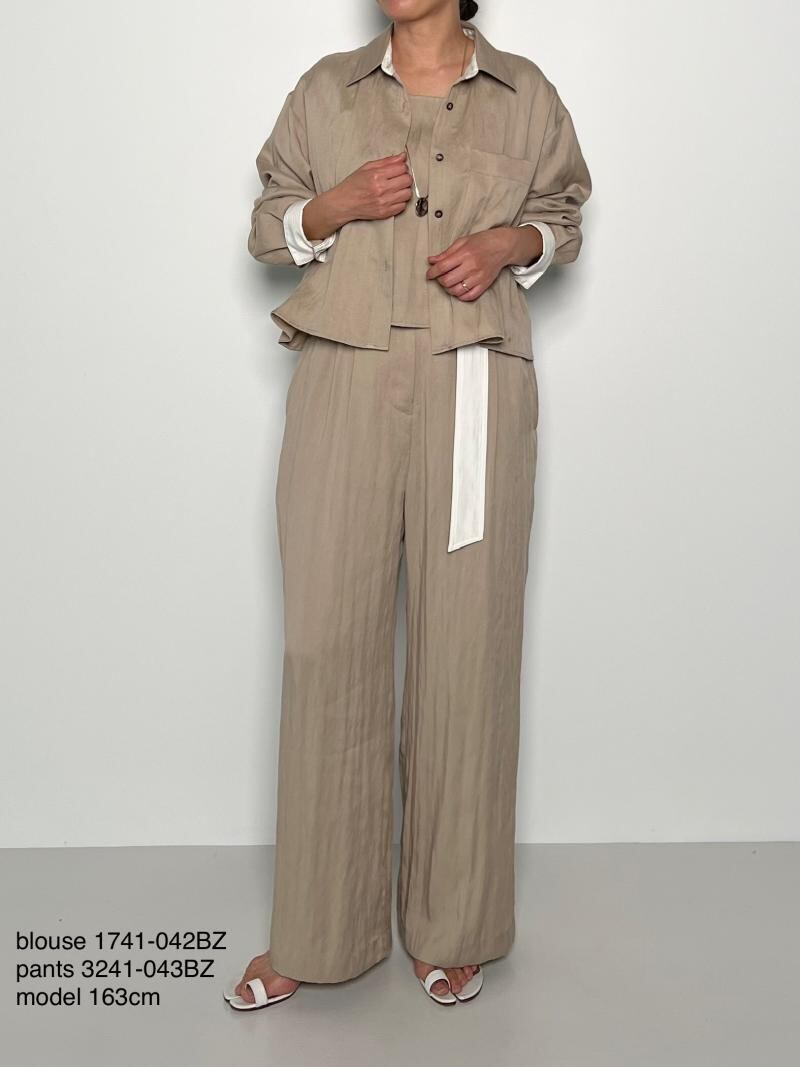 同素材で作成しております1741-042BZのブラウスとのセットアップもおすすめです。