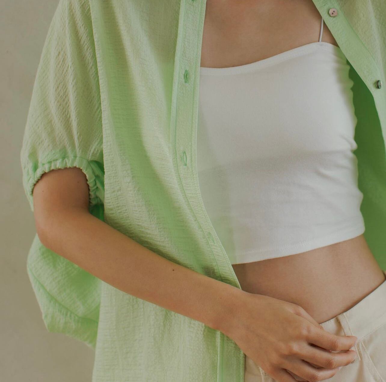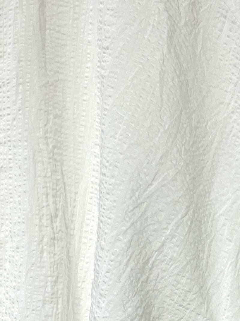 ストライプ状に交互に違う混率の糸を使用する事で生まれる、表面のポコポコ感が特徴の素材を使用しています。