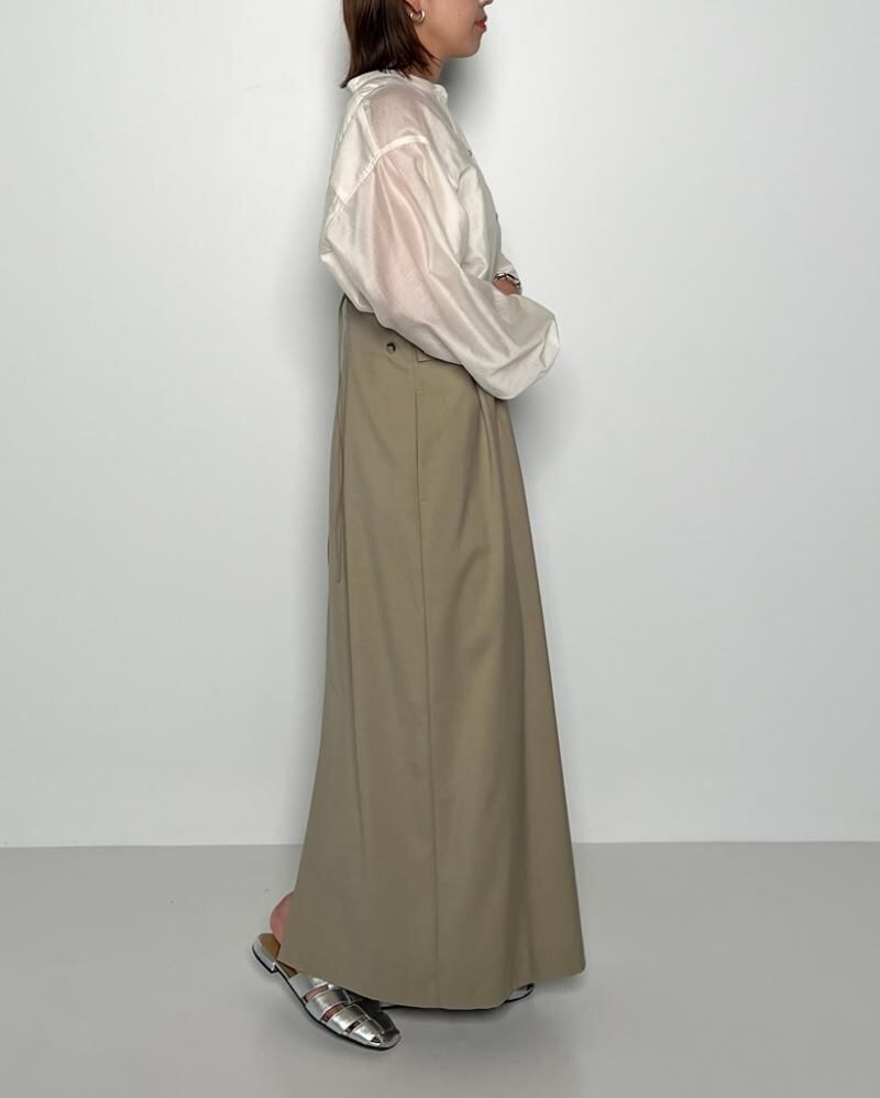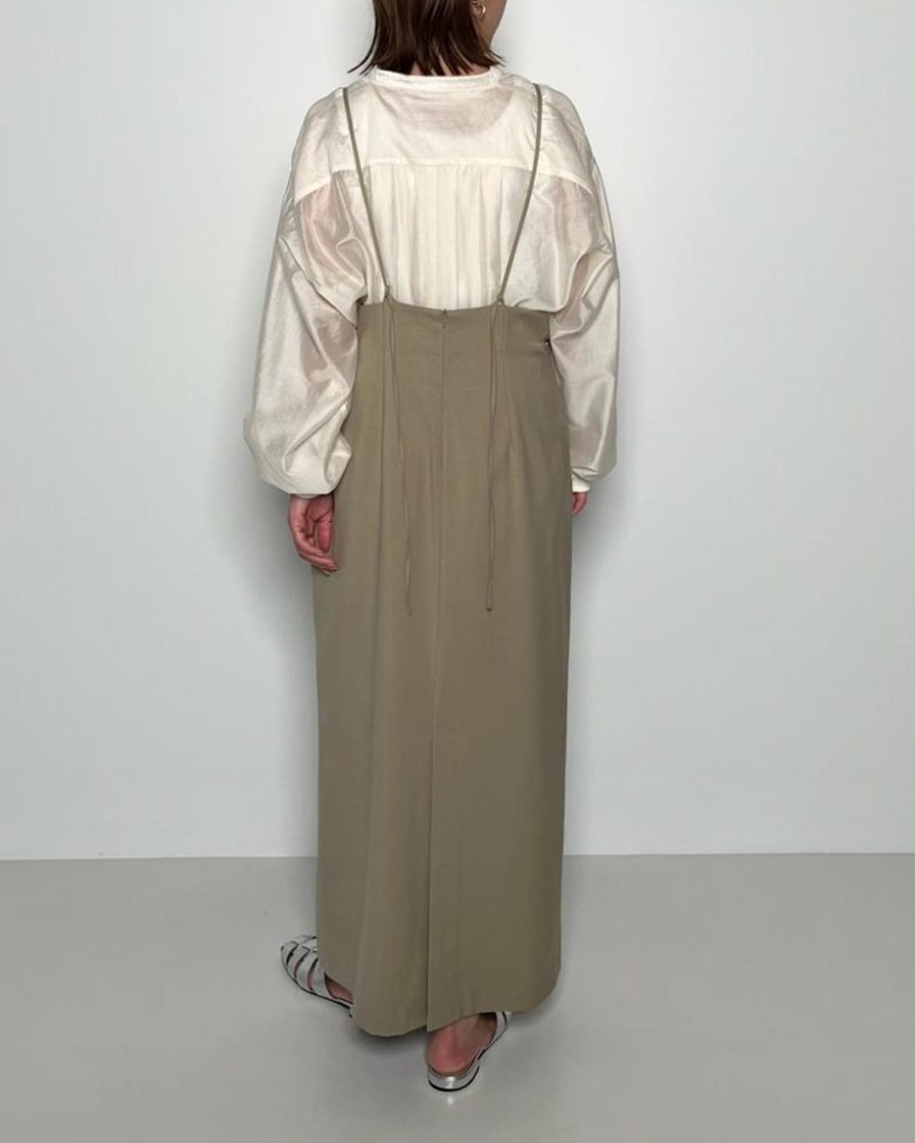 ウエストのタブ使いでスカートとジャンパースカートの2WAYで着用できる仕様になります。