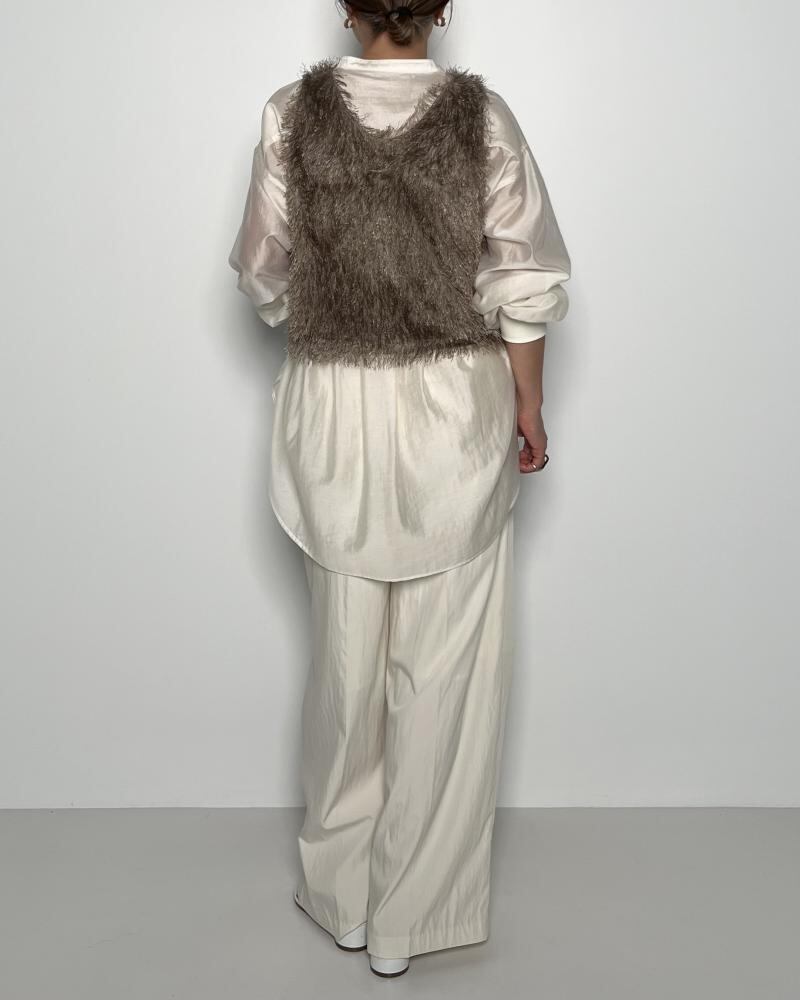 タンクトップとしても着用出来ますが、トレンドのレイヤードをしてビスチェ感覚でスタイリングも可能になるように仕上げました。