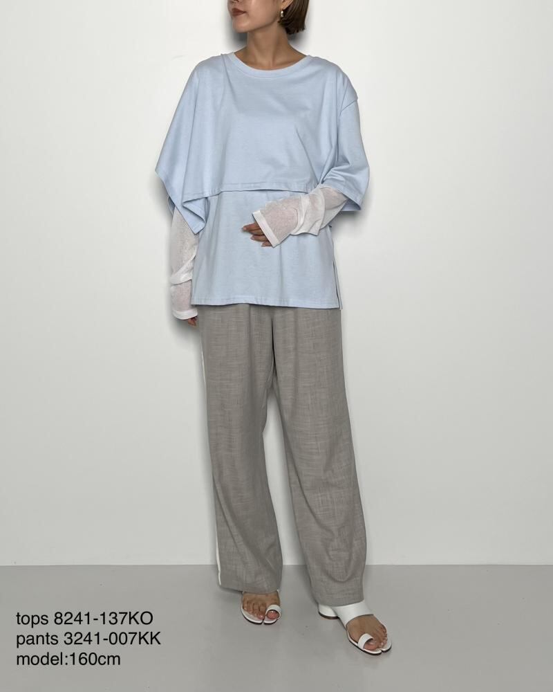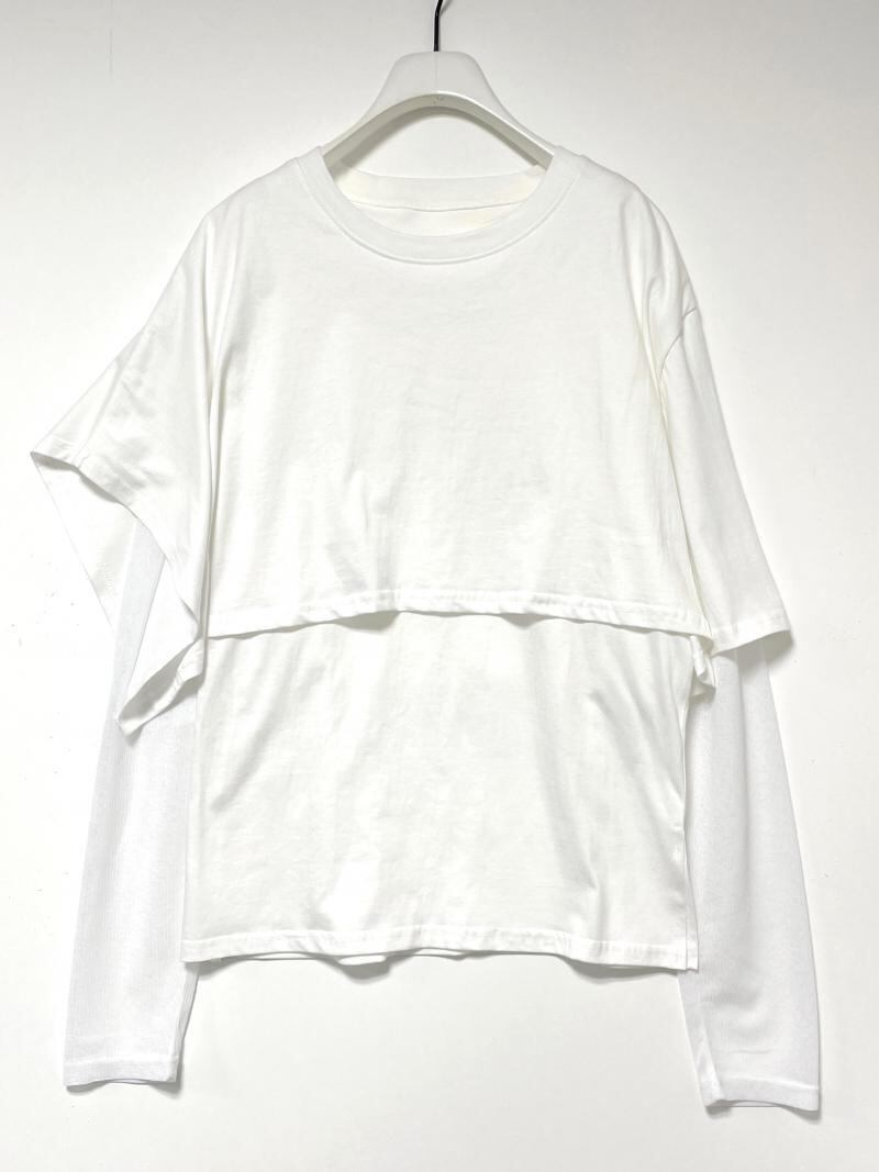 30番手のコットンジャージーと、シアー感あるジャージー素材で切り替えたデザインカットソーです。