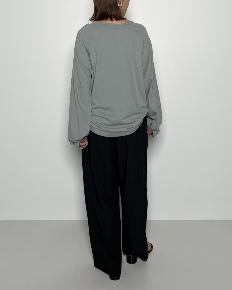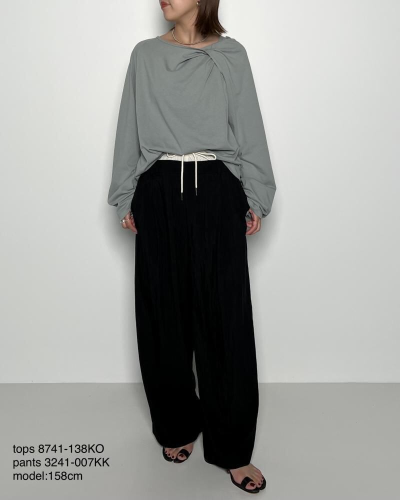 フロントのネジリDETAILがポイントで、ルーズなシルエットにすることで抜け感のある洗練されたカットソーに仕上げています。