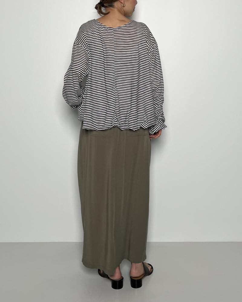 華奢な落ち感のある細ピッチのボーダー。