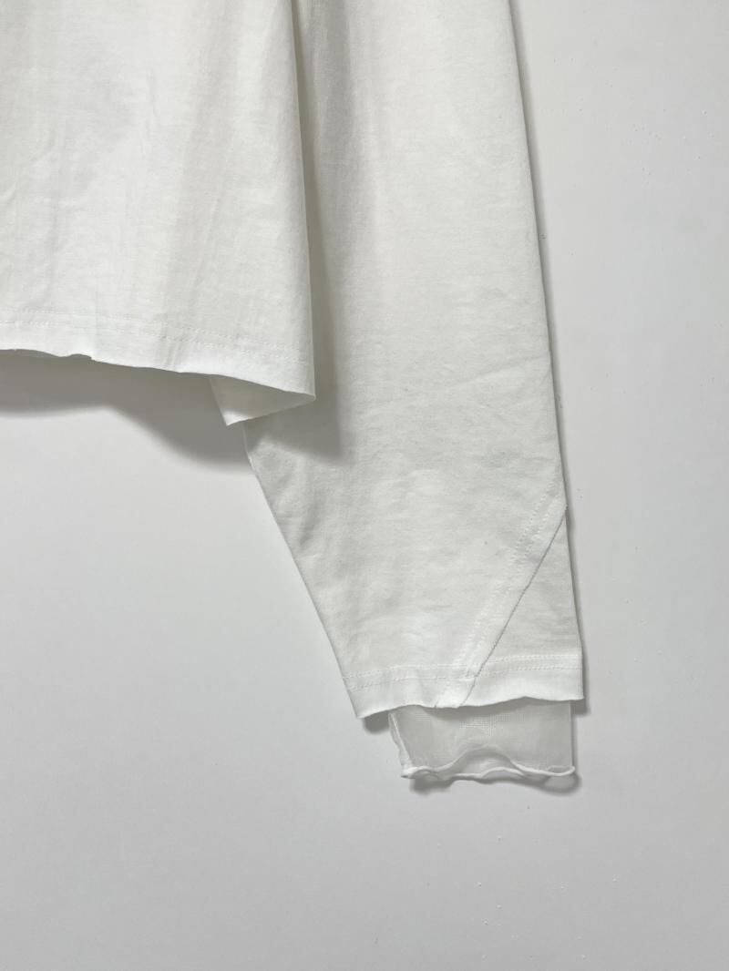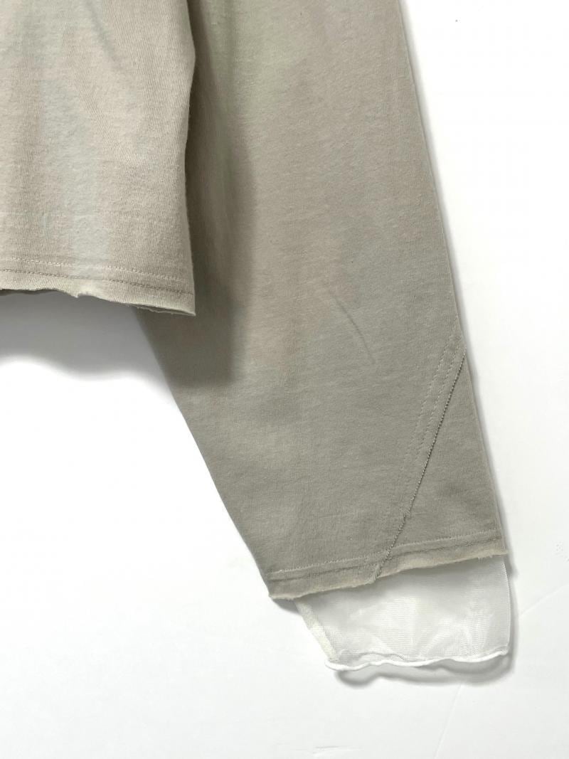 袖はチュール&表地の2枚仕立てにしているので、表地をたくし上げる事でチュール袖をレイヤードしている様に着用頂けます。