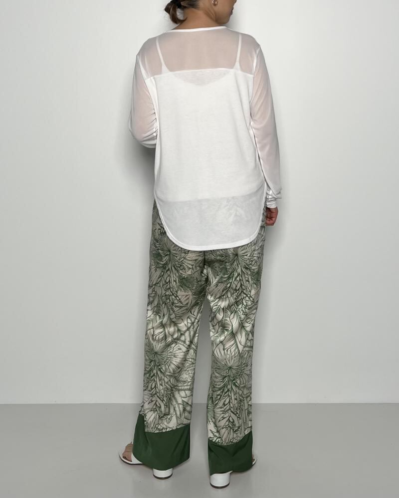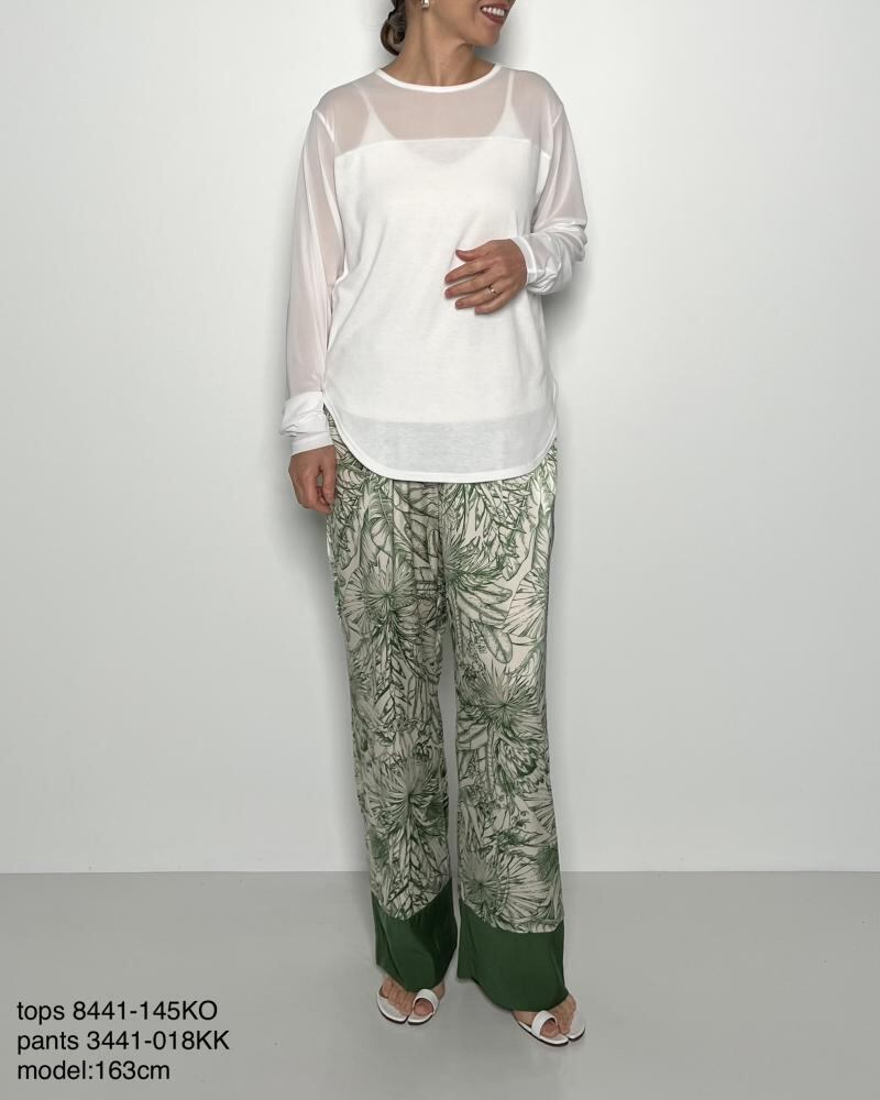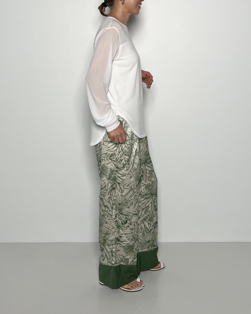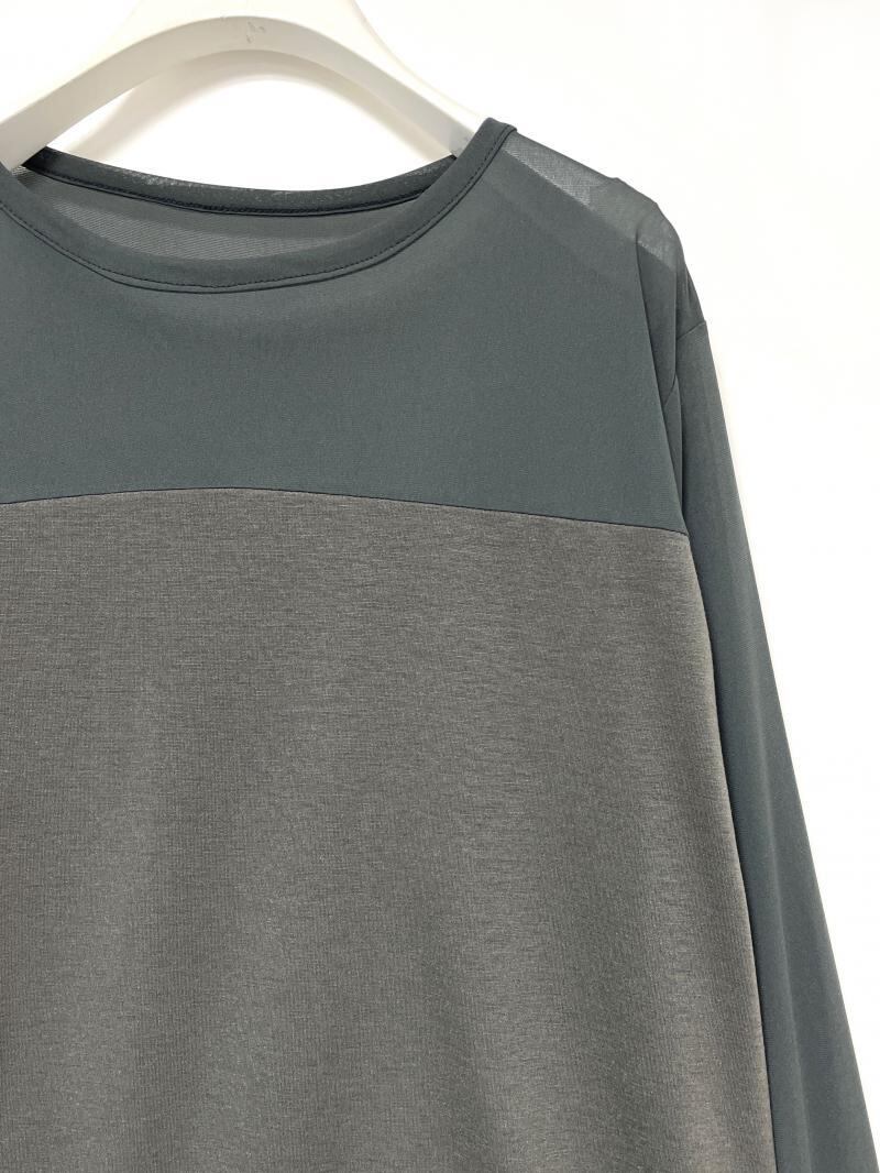 シアーなカット地と透けにくい落ち感のあるカット地をドッキング。