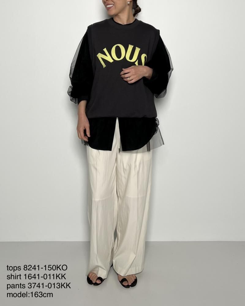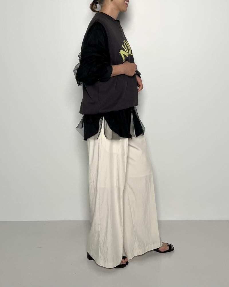 大きく開いたアームホールとルーズシルエットで女性らしさを演出。