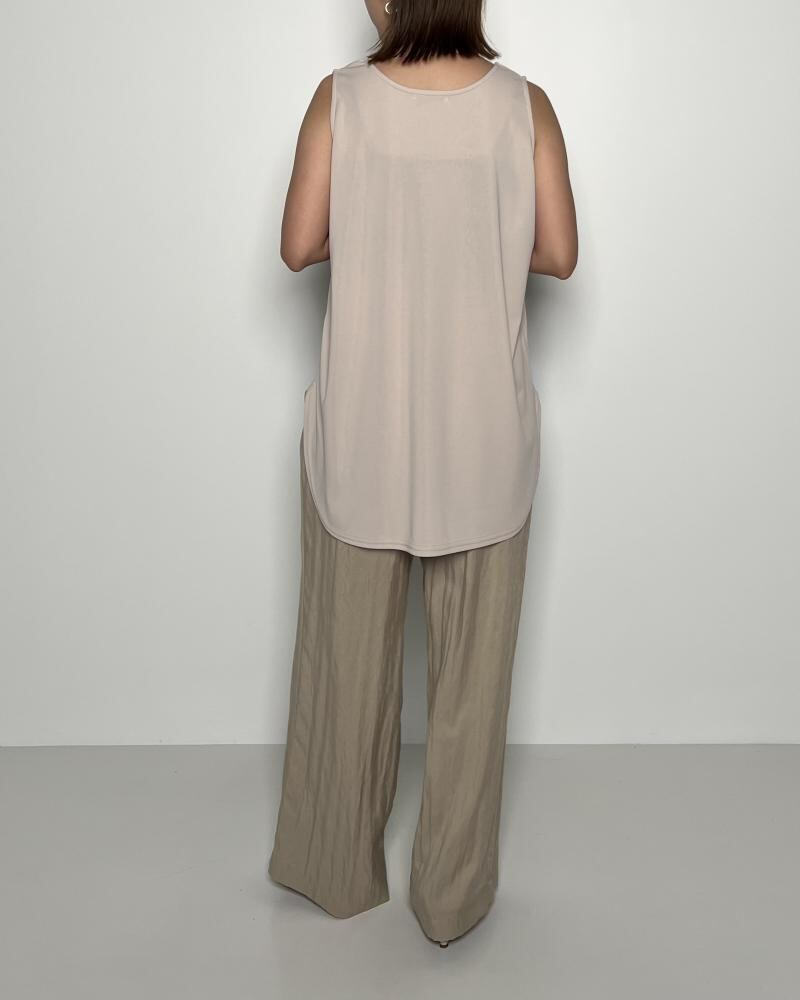 なめらかで上品な見た目のジャージー素材を使用し、ゆるシルエットのタンクです。シンプルなセンターロゴが印象的で女性らしい大人の遊び心のあるデザイン。JKインしてカジュアルな印象のオフィススタイルからシャツコーデのインナーとしても活躍する一枚です。