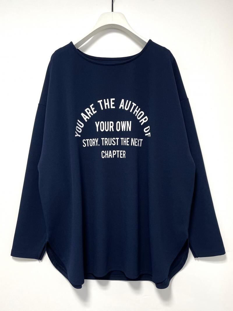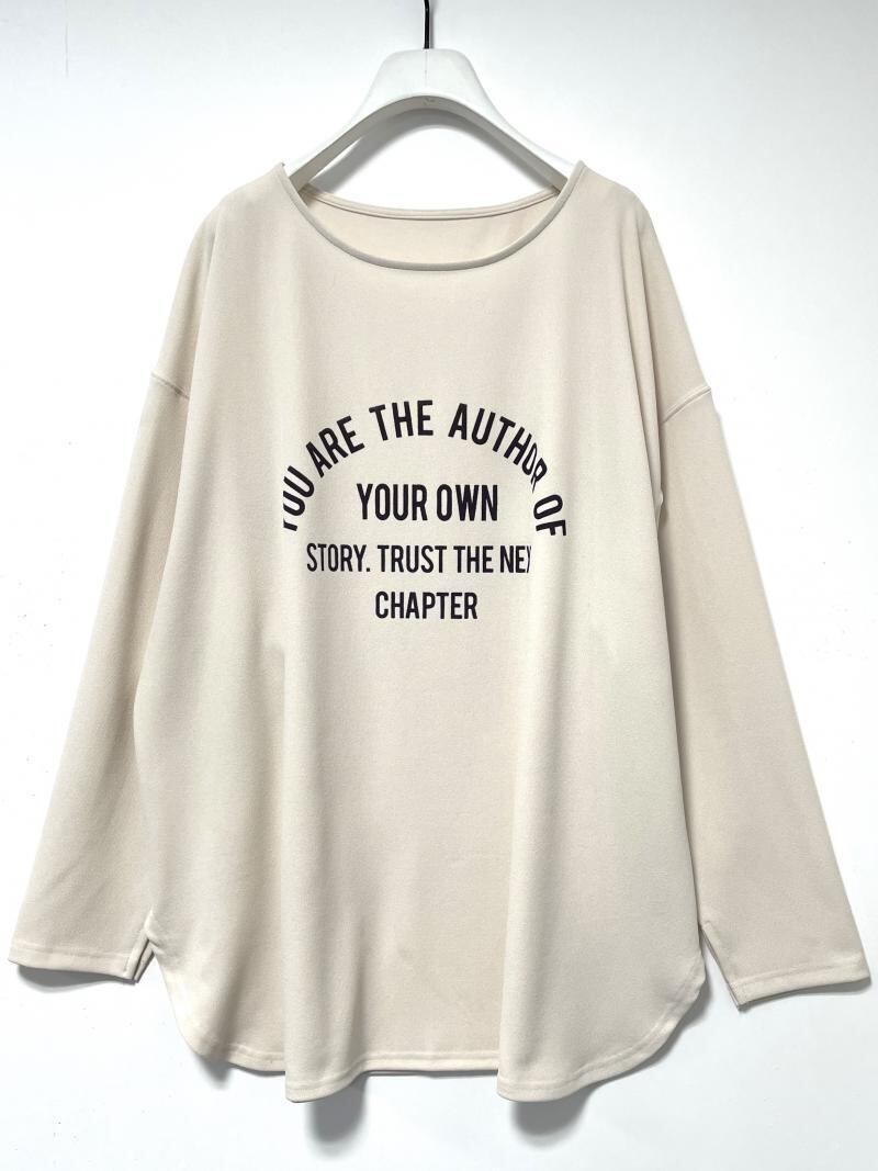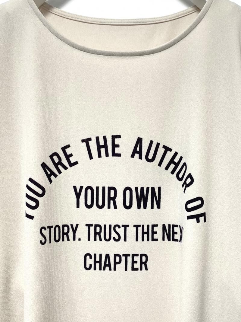 凹凸感がありざらざらとシャリ感のあるジョーゼットのような表面印象で、柔らかく伸縮性があり肌心地の良いジャージー素材を使用したグラフィックロンT。緩やかな裾カーブに、肌に張り付かない余裕のある袖シルエットで大人カジュアルスタイルに活躍します。 グラフィックプリントはシンプルにスタイリッシュに印象的なアーチを描いたロゴで、優しく背中を押すようなメッセージが込められたセンテンスです。