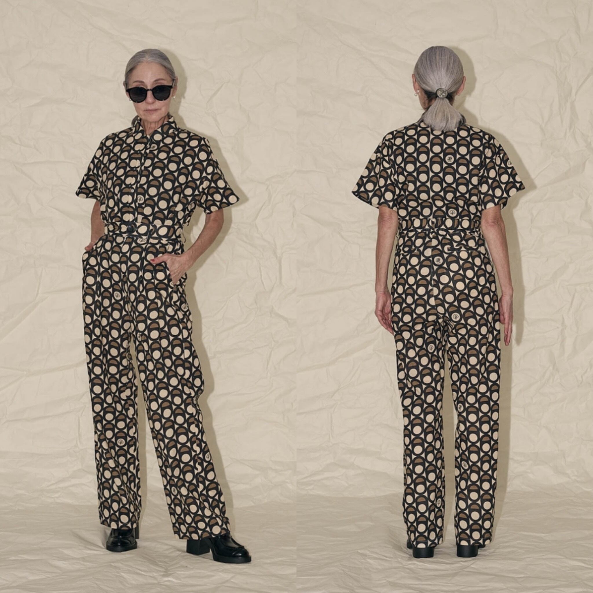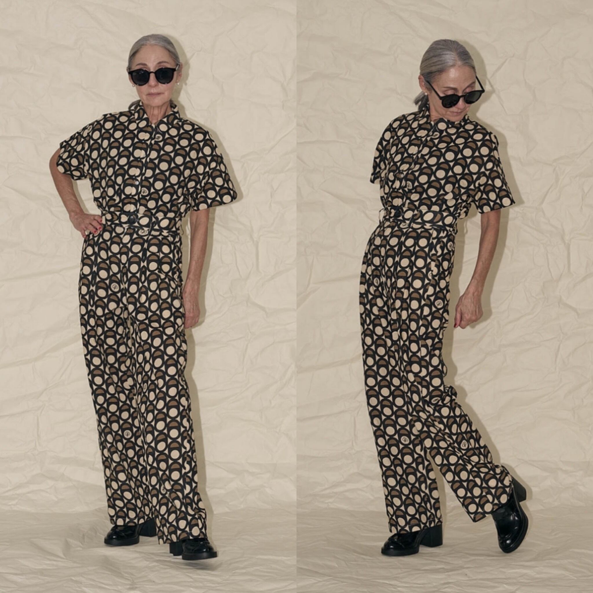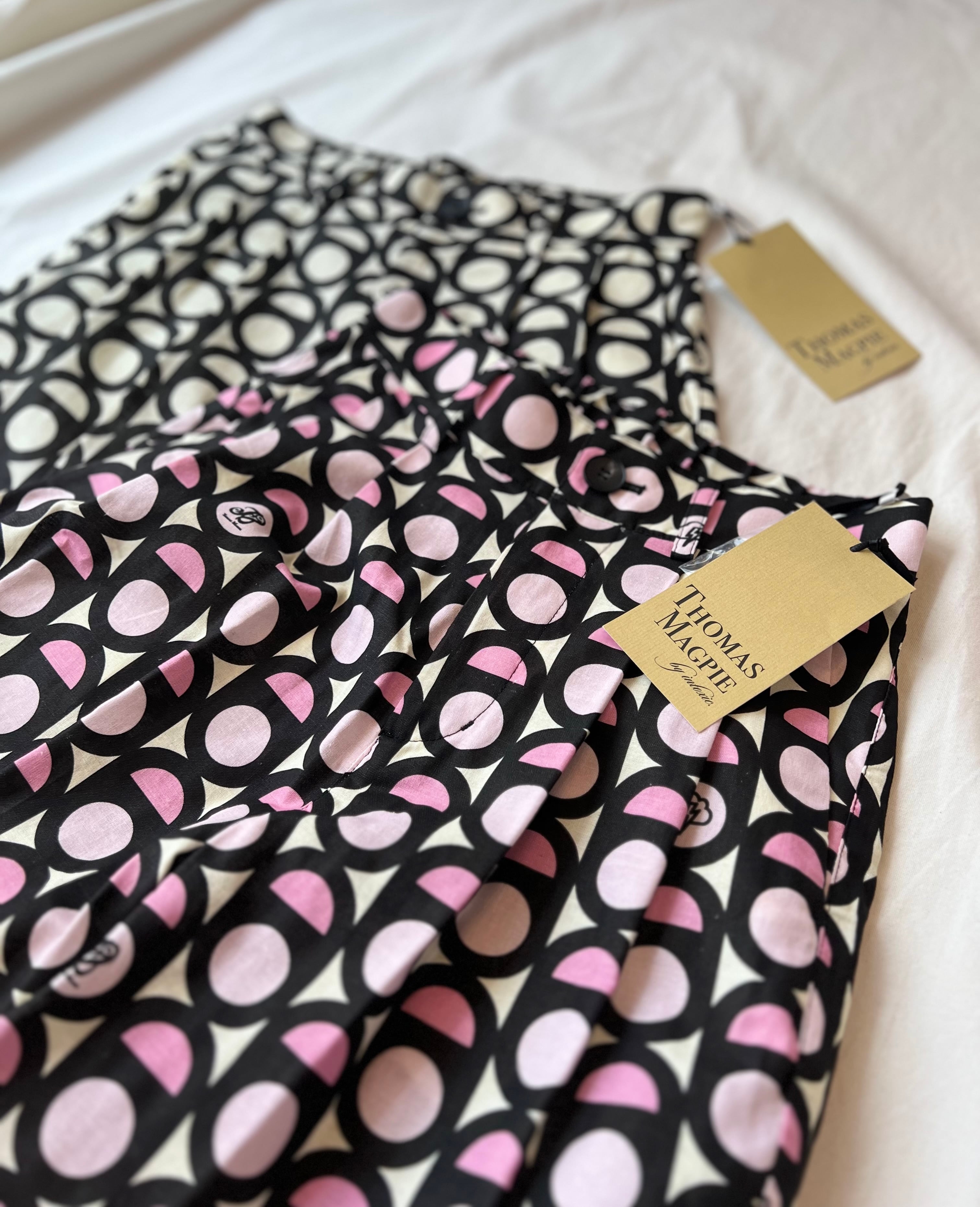 ラミー(リネン)にプリントしたものが大変好評っだった昨年のオリジナルプリントを少し小さくしてリピートされたパンツです。