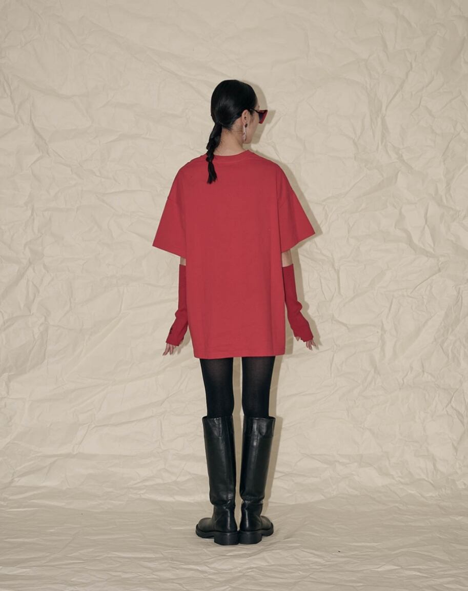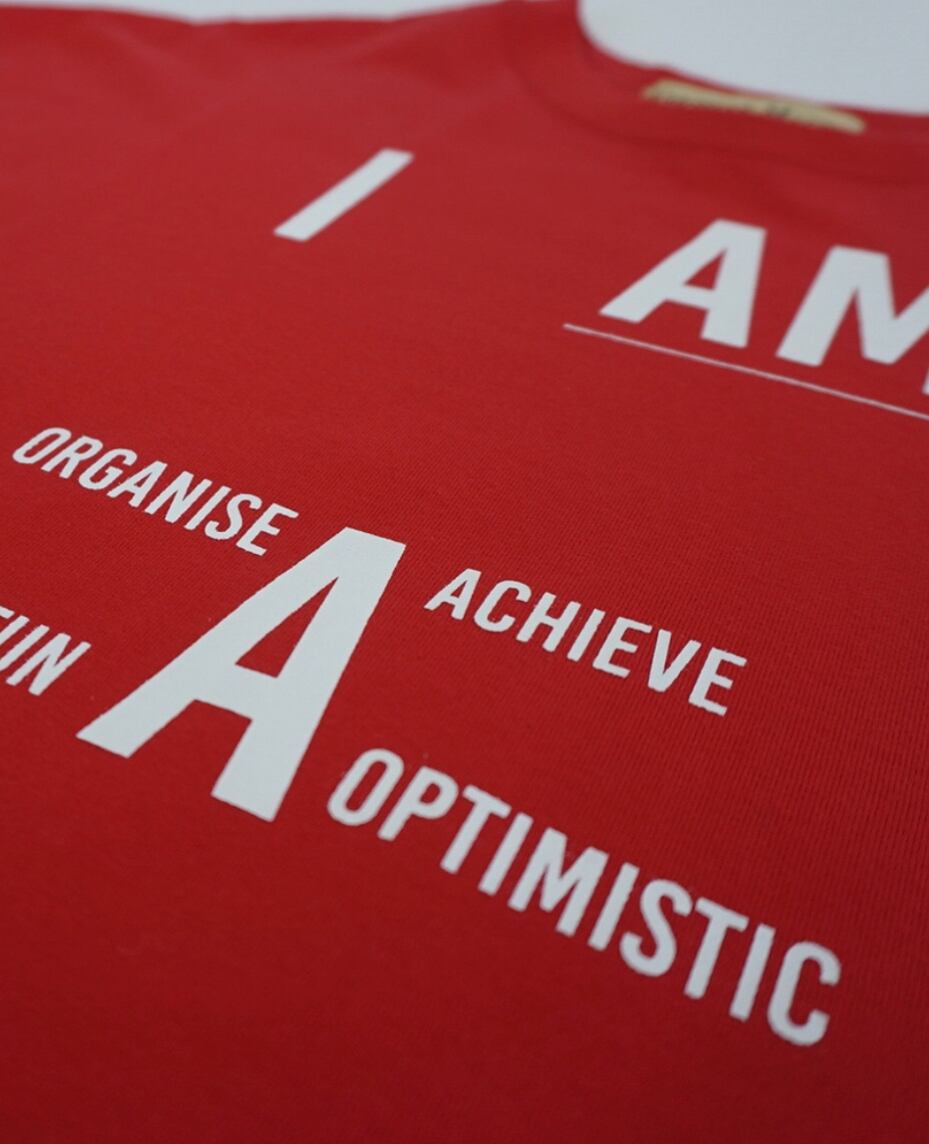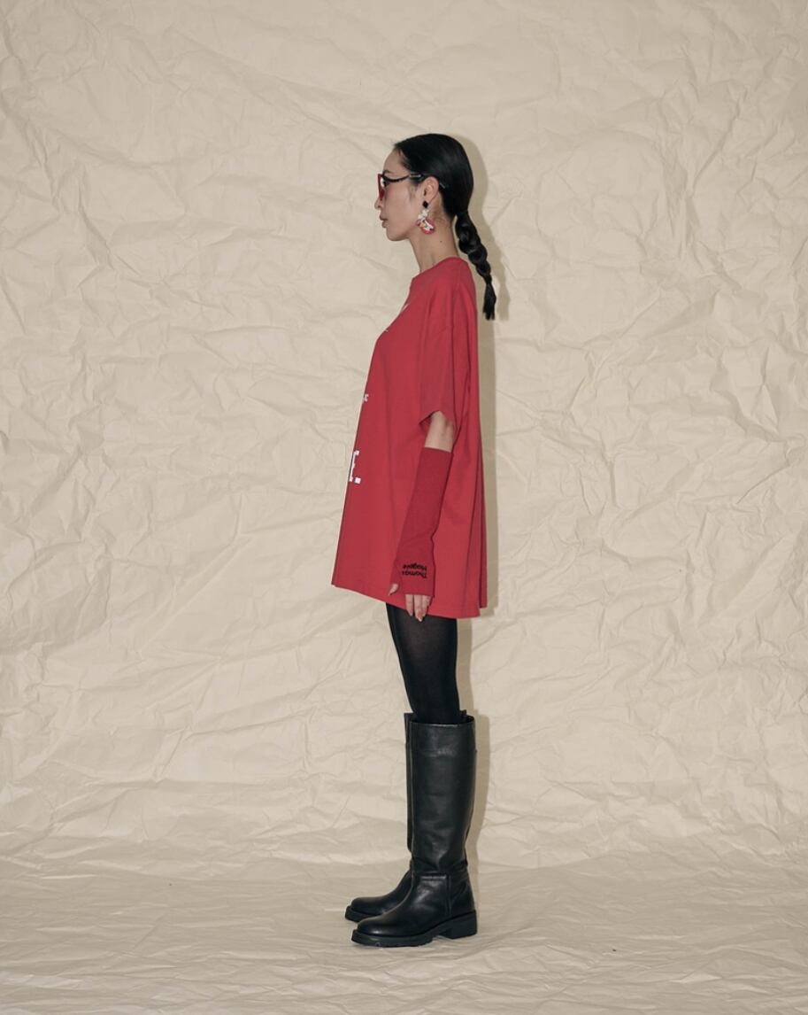 彼女を思った時に出てきたワードをそのままTシャツのロゴに入れてみました。このシャツを着たらそうなれるといいな、という願望もあります。今回は滅多に出さないピュアレッドにしました。滅多に出さないレッドですが、デニムなどに合わせるととても可愛いかなと思います。赤にはとてもこだわりがあり、私はこの真紅の赤が大好きです。