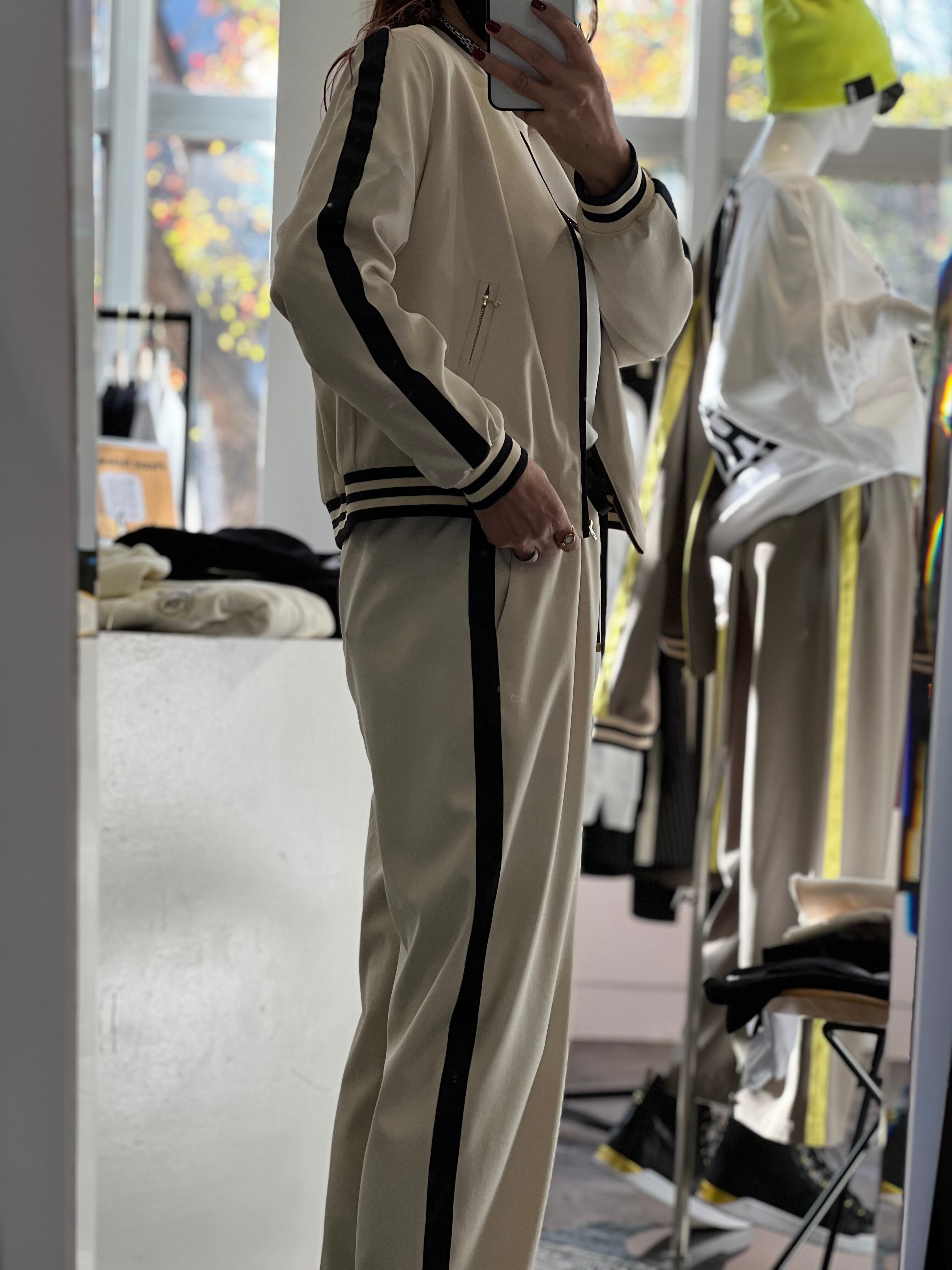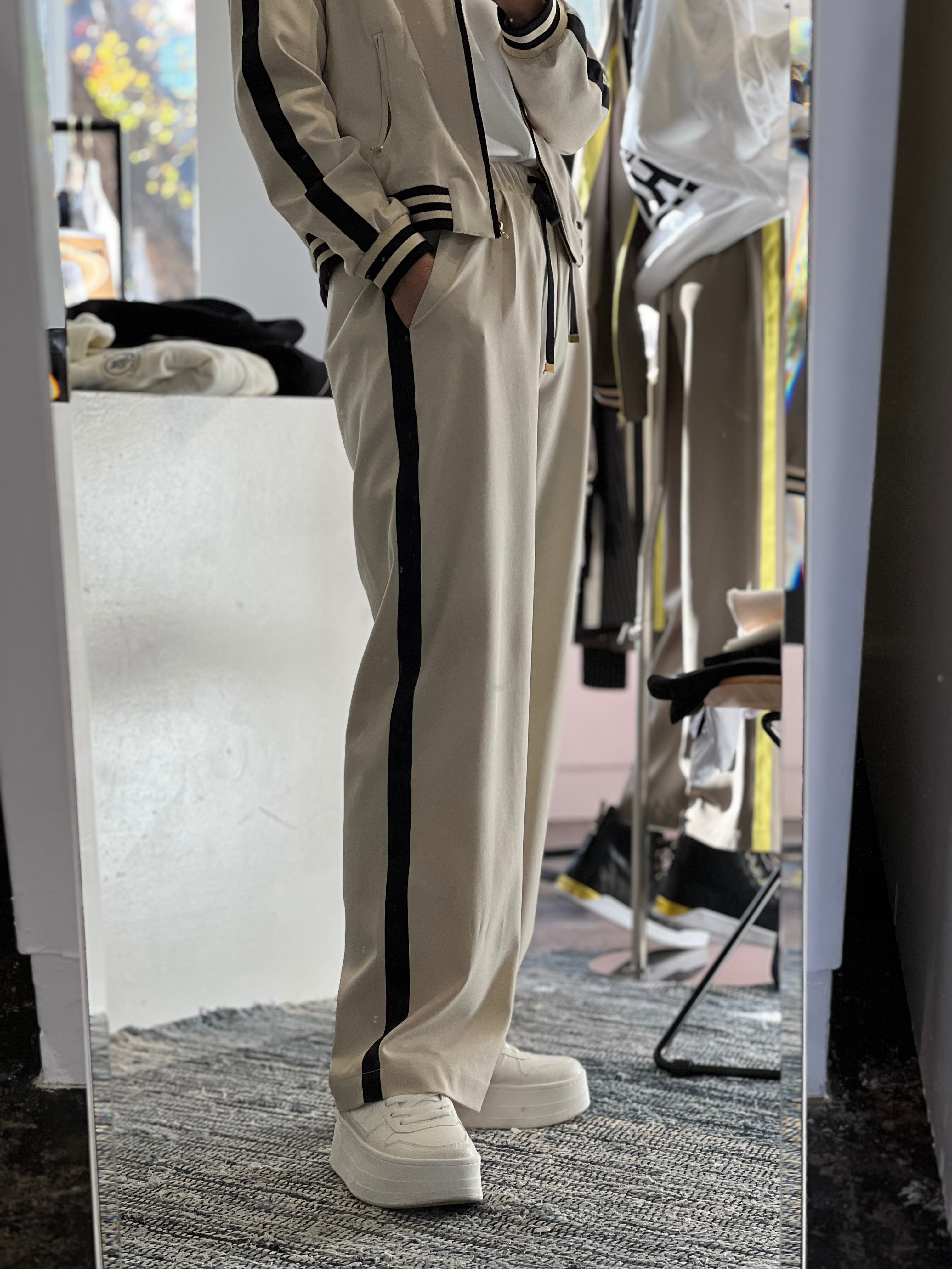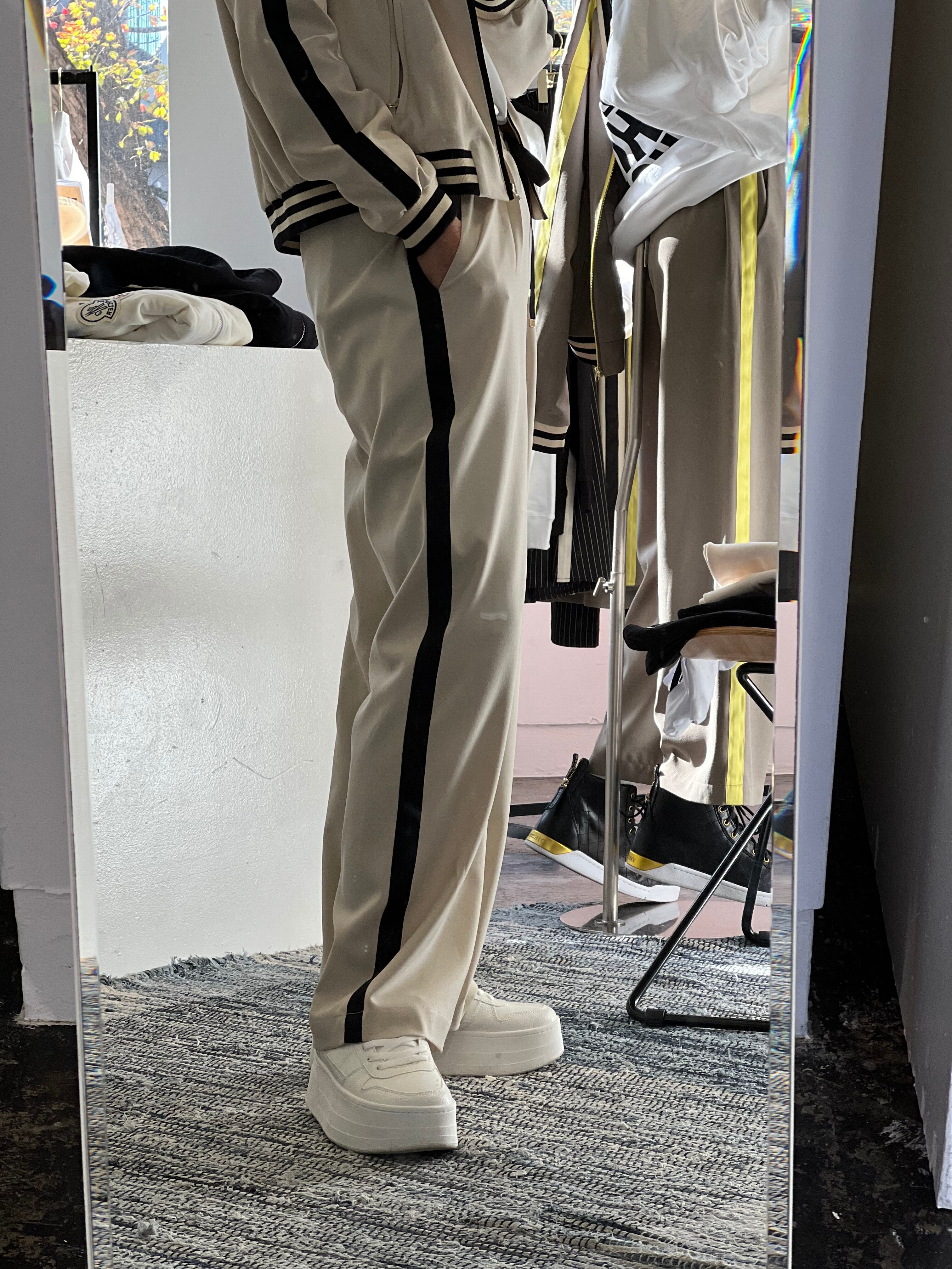 単品でもセットアップでもコーデに取り入れやすいラインパンツです。