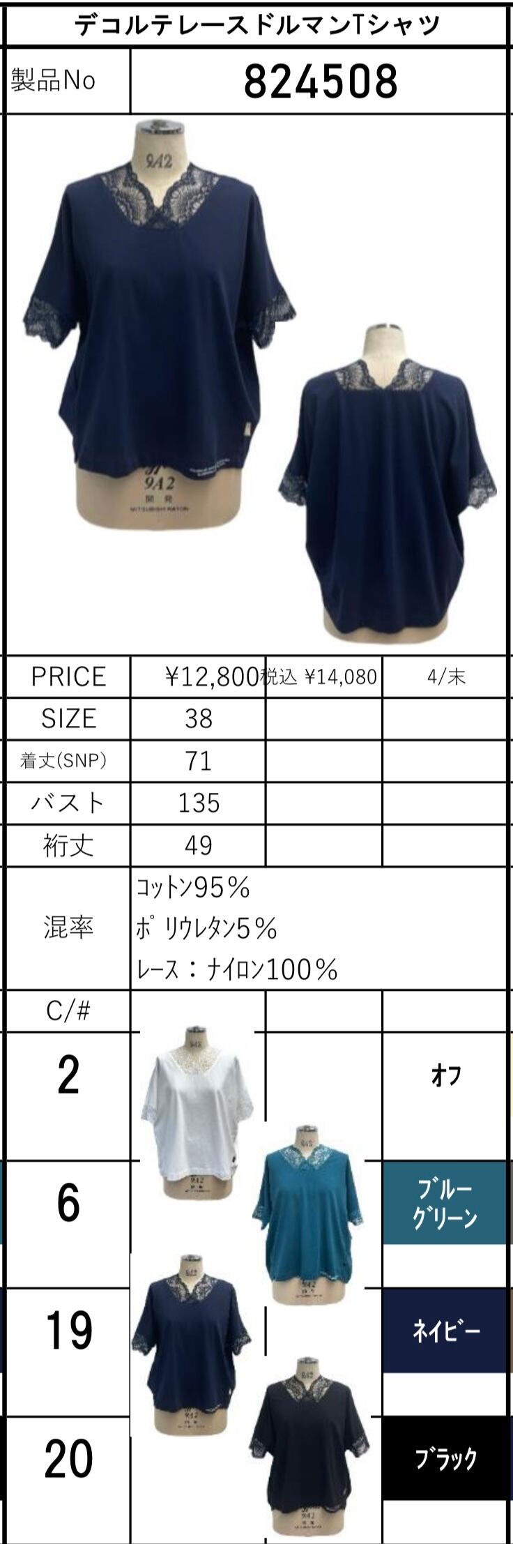 デコルテレースドルマンTシャツ