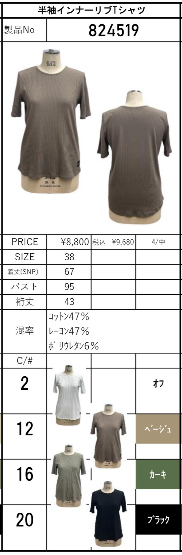 【 ayane 】半袖インナーリブTシャツ(824519)