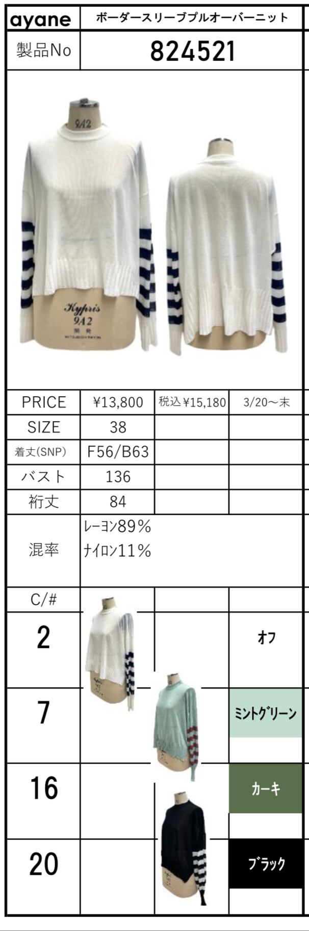 予約販売【 ayane 】ボーダースリーブプルオーバーニット(824521)3月下旬お届け