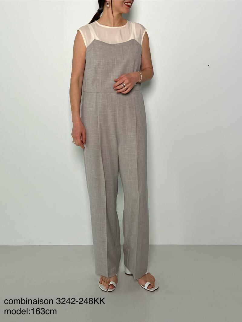 シアー素材との異素材切り替えがポイントのオールインワンです。