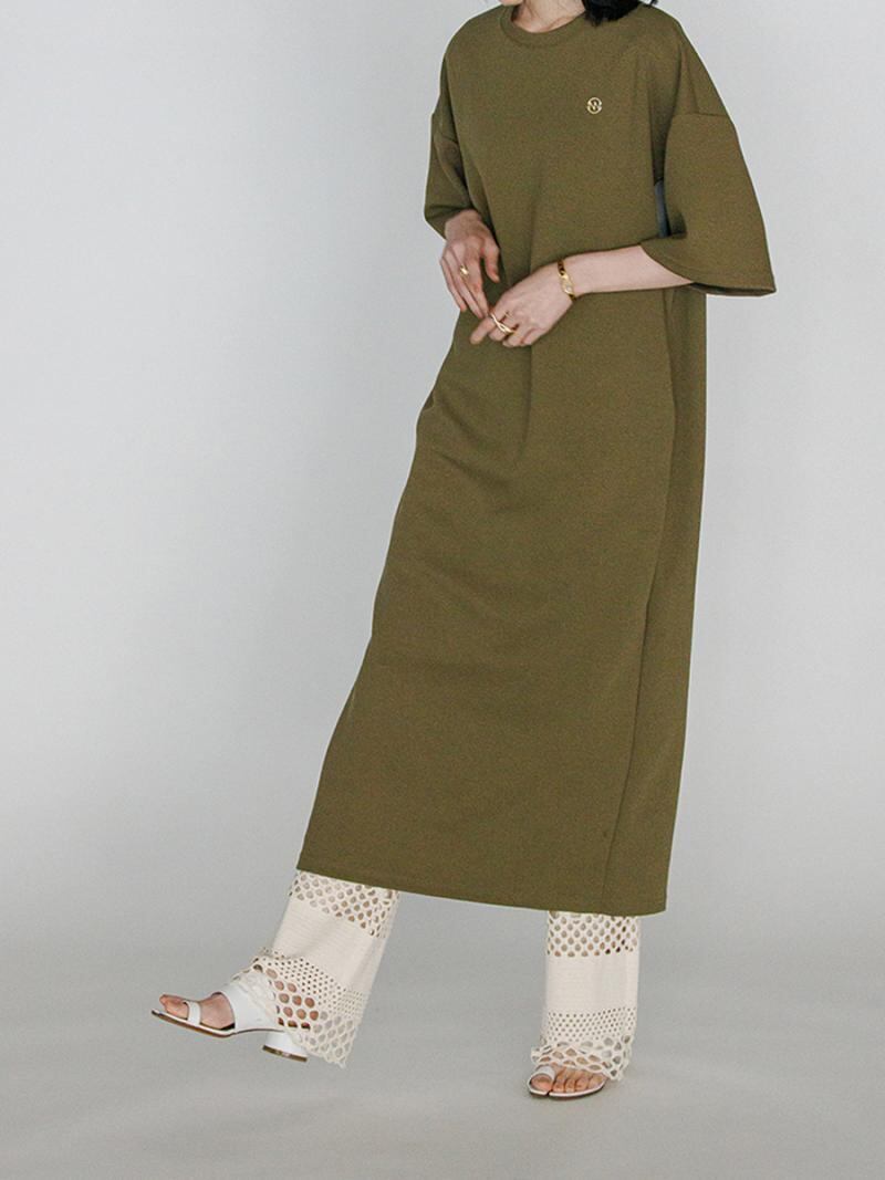 裾にかけて少し広がるフレアシルエットです。ニット素材なのでストレッチが効いているのがうれしいポイントです。 足首が出るくらいに設定している裏地もシャリ感のあるさわやかなカットソー生地