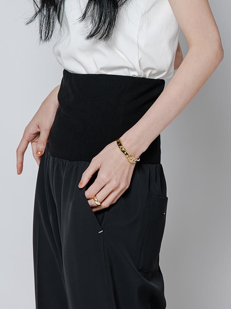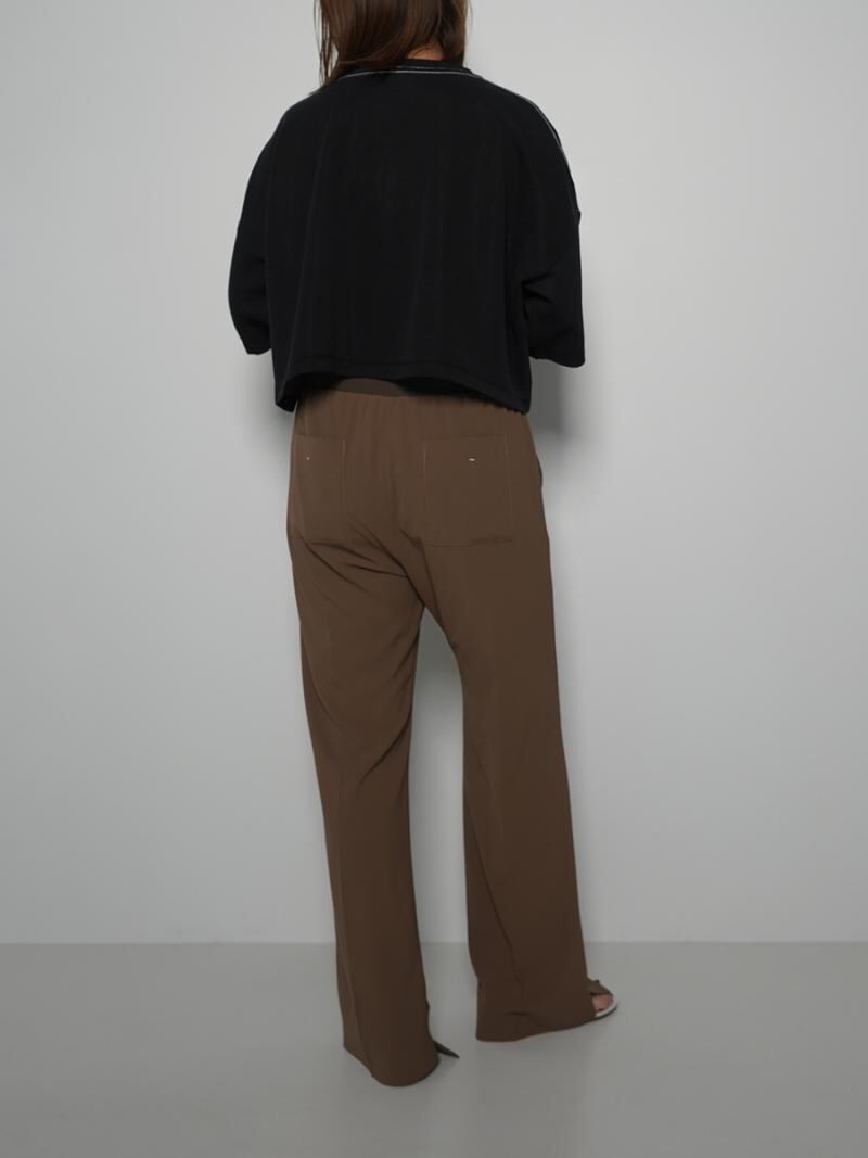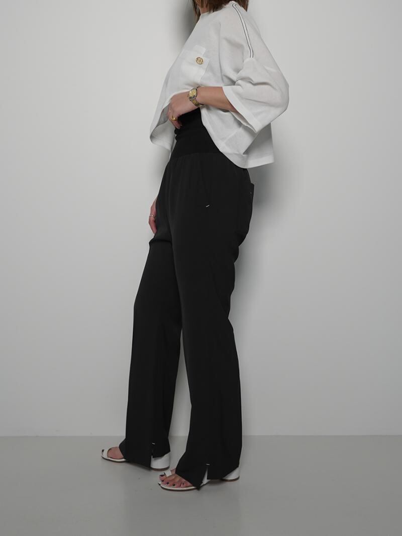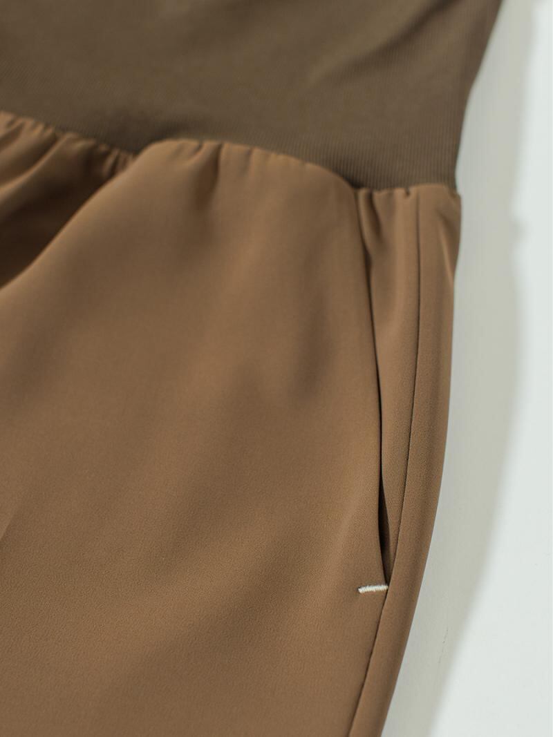 ウエストに施した幅広のリブベルトが特徴のパンツです。