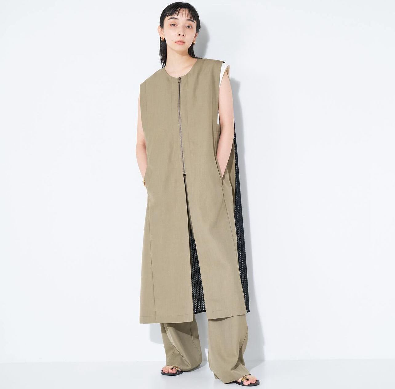 予約販売【 chignon 〜YENN〜 】リネンライクドッキングジレ [4442-253KK] 4月中旬お届け
