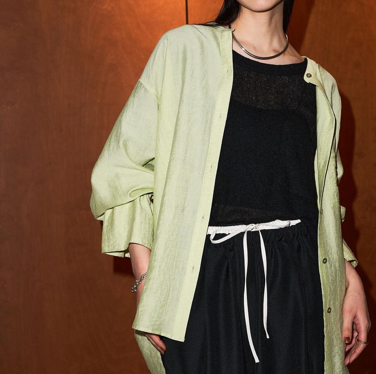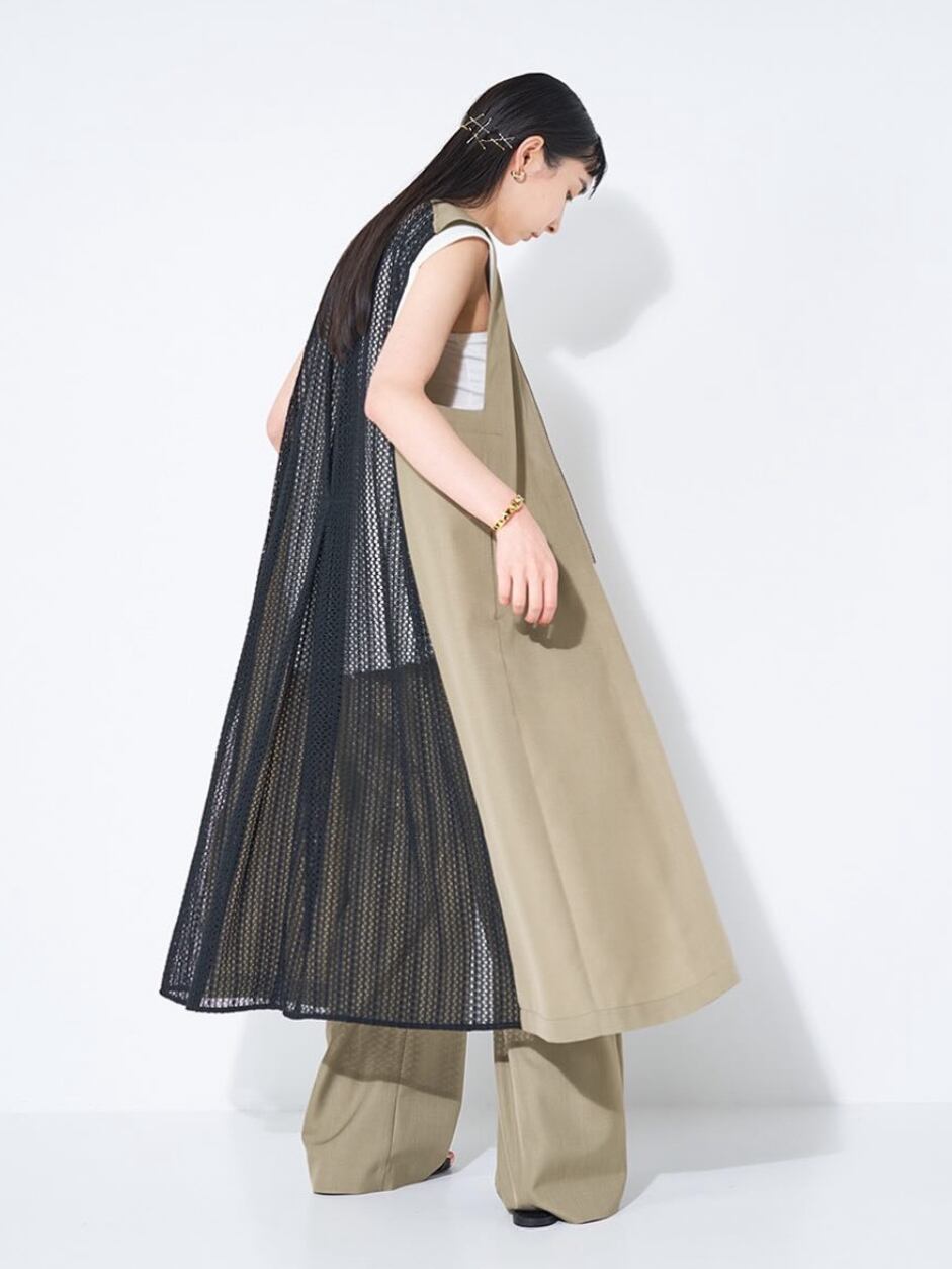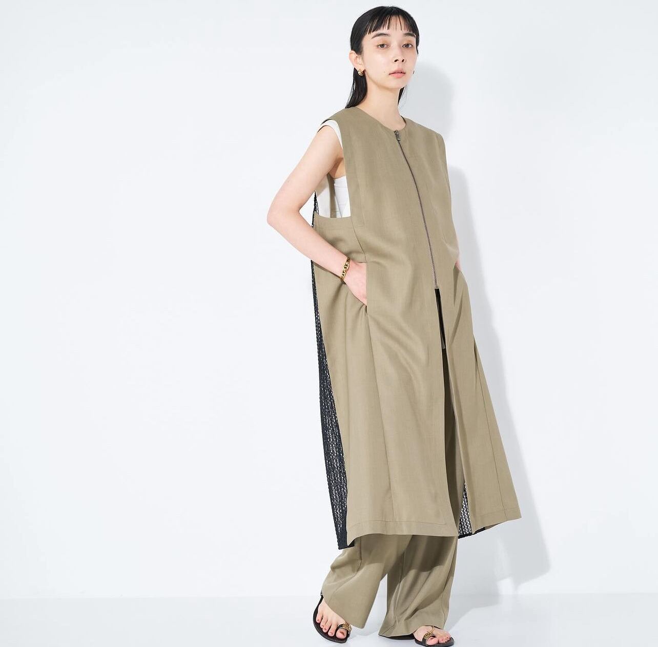 同素材のリネン調合繊を使ったジレも展開しておりセットアップとしてもおすすめのスタイリングになります。