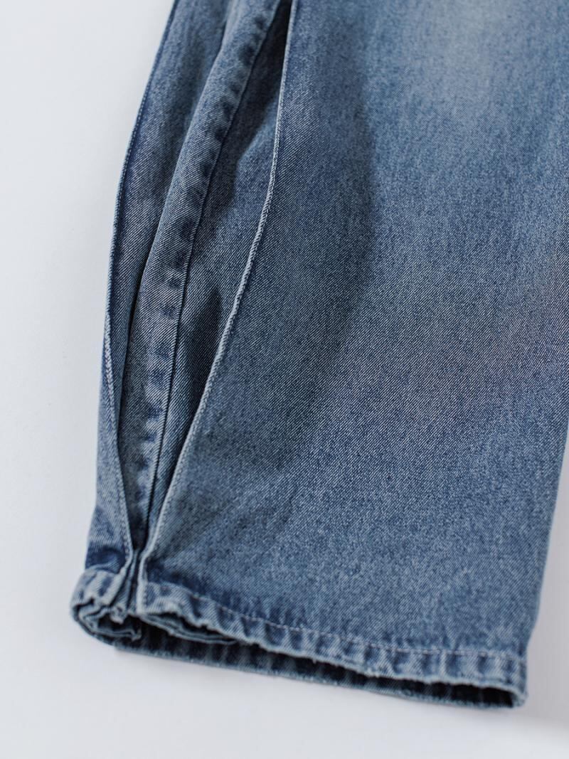 サイドに施したボックスプリーツがポイントのデニムパンツです。