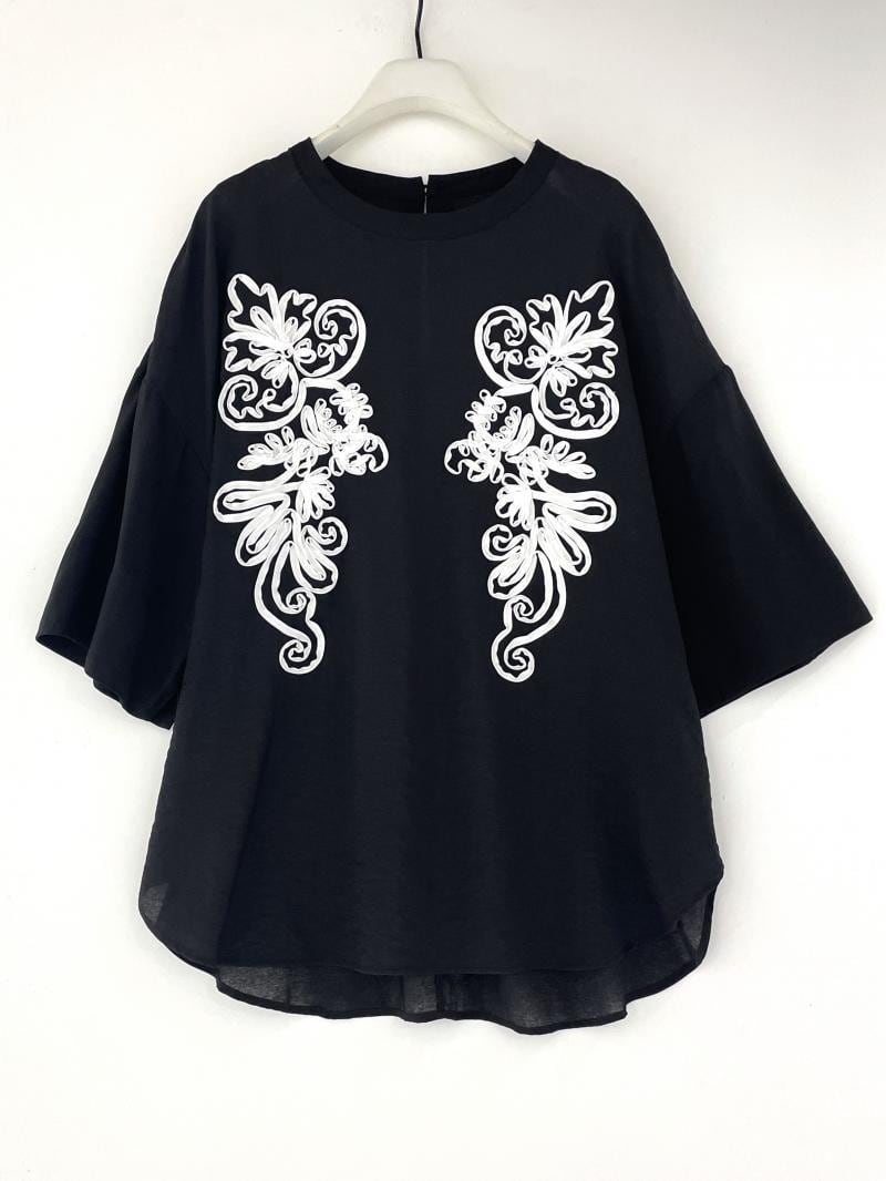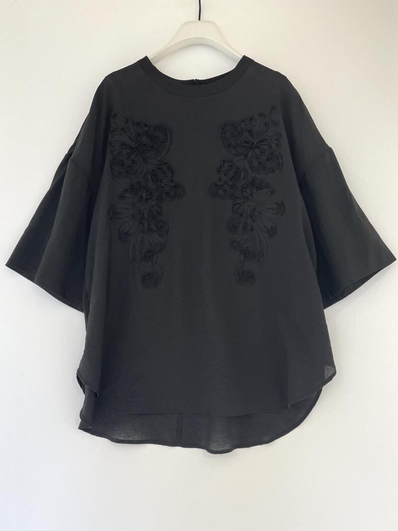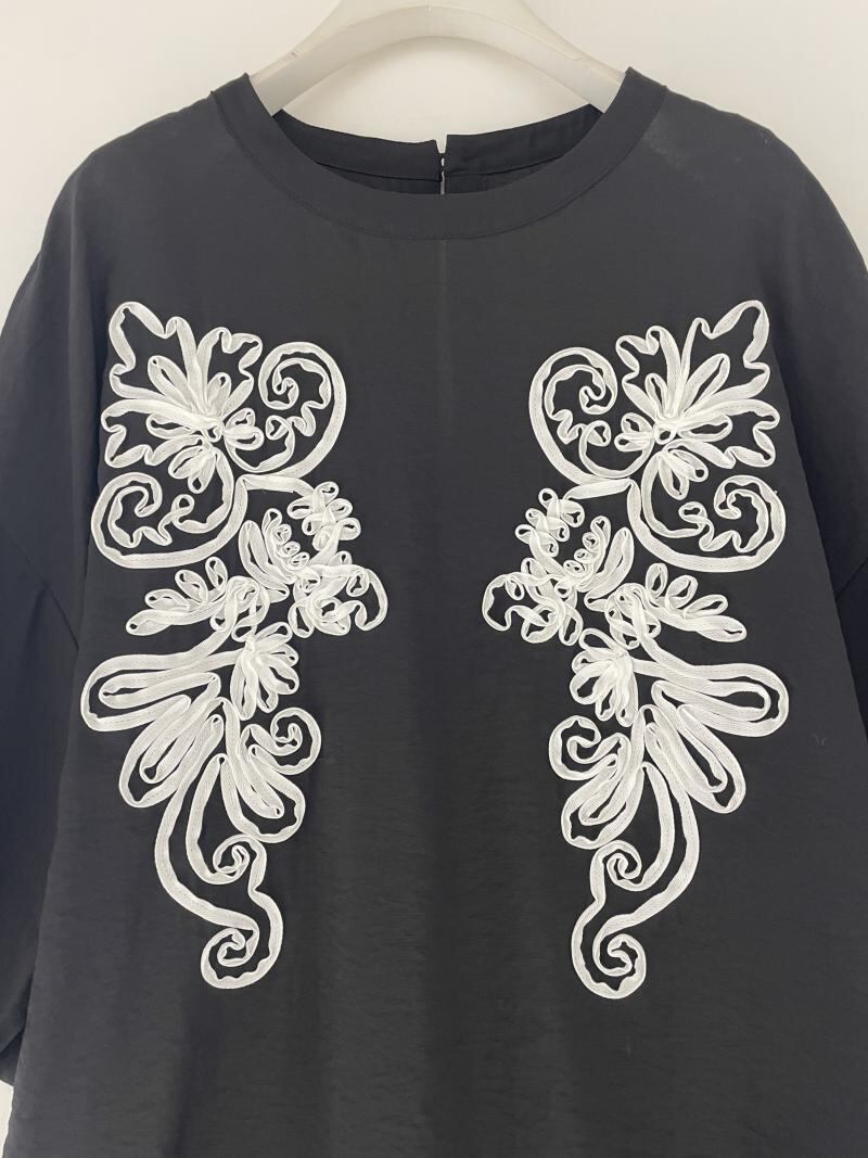 オリジナルの図案を施したコード刺繍トップスです。