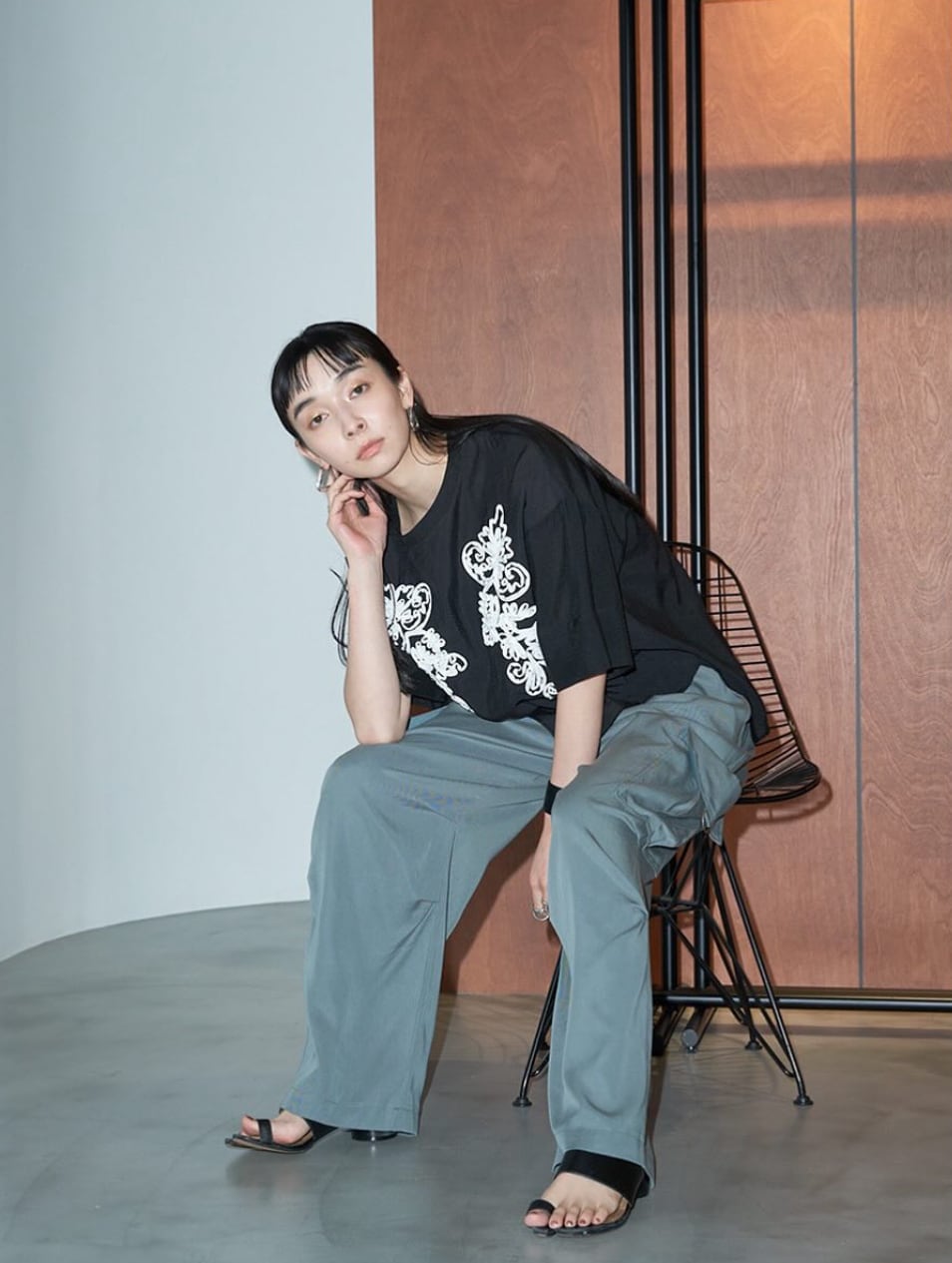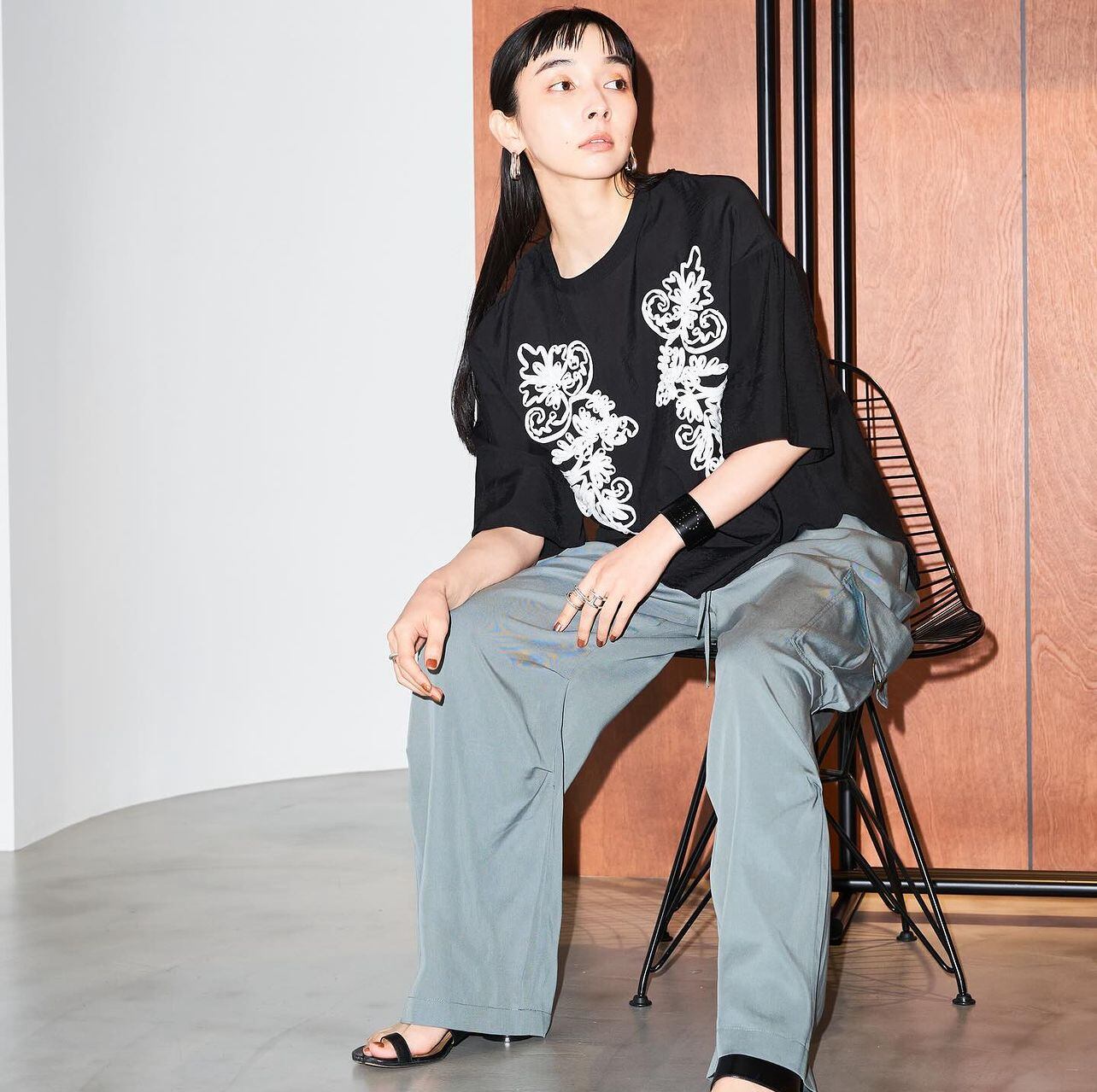 オリエンタル柄をシアー素材に施し、洗練されたモダンな印象に仕上げました。