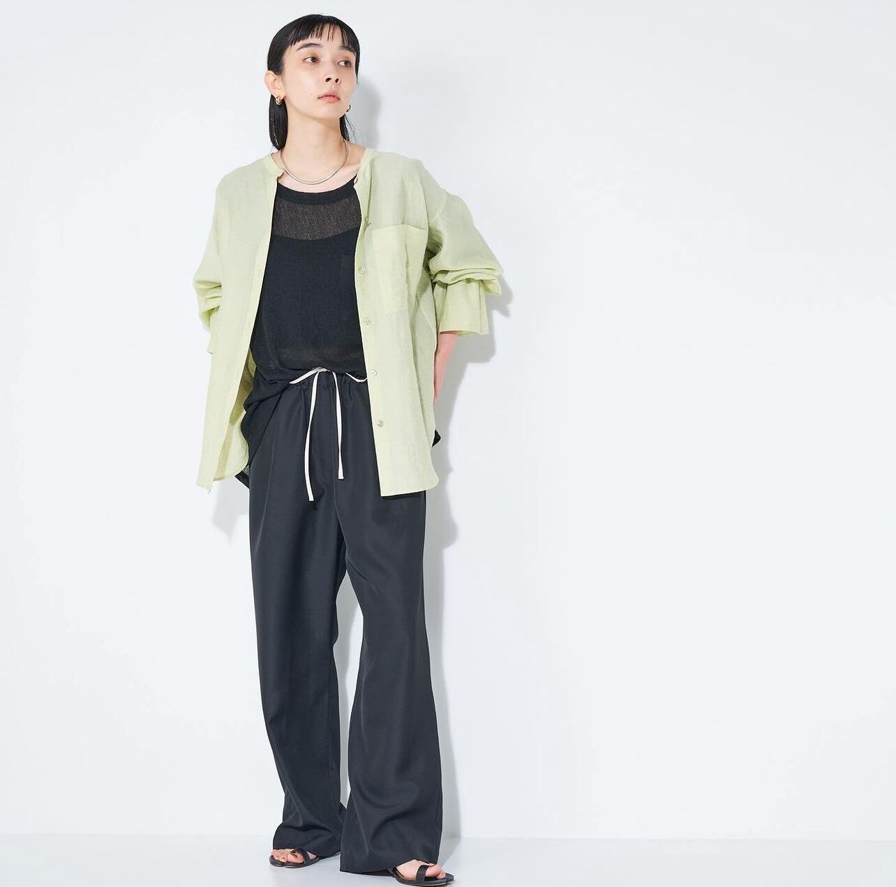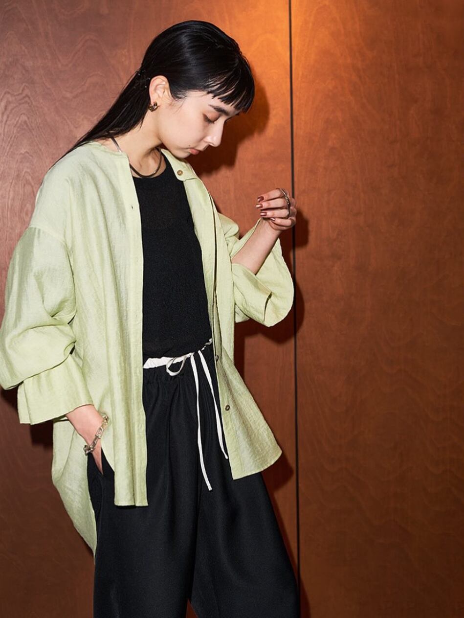 リネン混ながら、ナチュラルすぎず大人っぽくご着用いただけ、