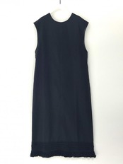 裾にフリンジレースを施した、ノースリワンピース。