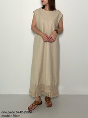 綿混の程よい粗野感が特徴の素材を使用しています。天然繊維の優しい風合いの生地と、ナチュラルなフリンジレースで雰囲気あるワンピースに仕上げています。