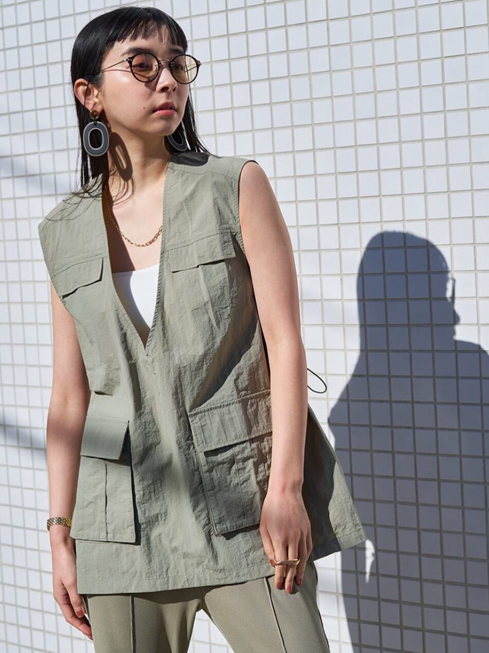 予約販売【 chignon 〜YENN〜 】ポケットVネックベスト[1642-308HE] 4月中旬お届け