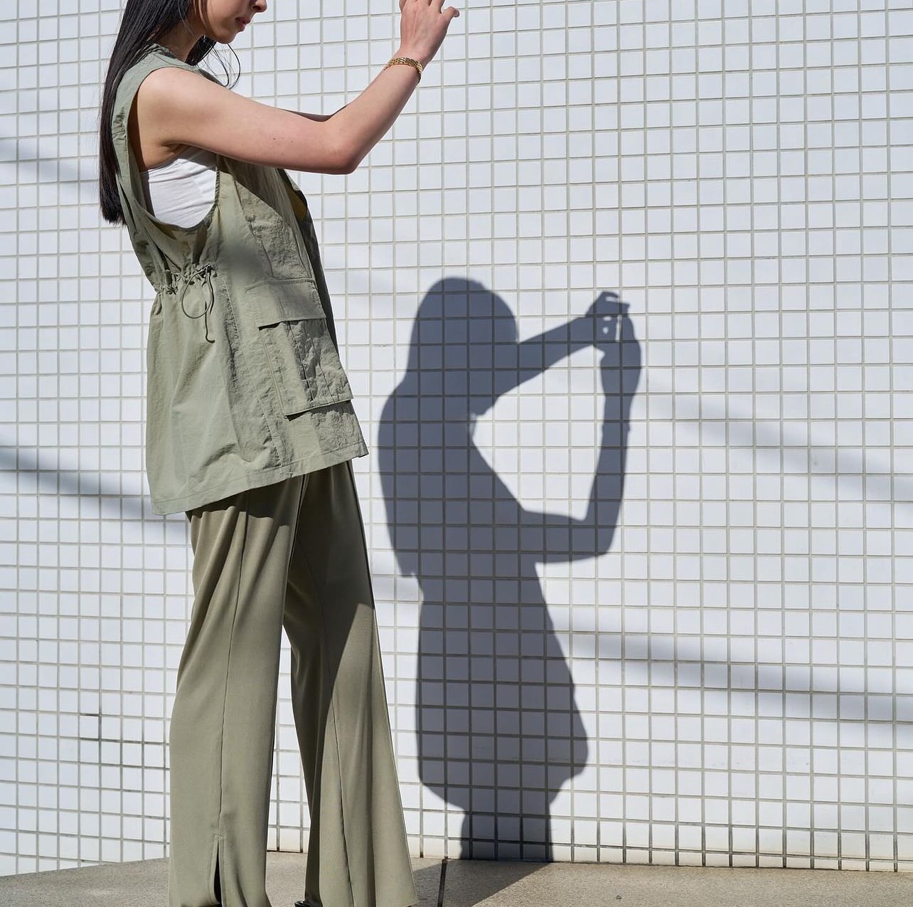 バックのウエストにドロストを入れ、絞れるデザインにして、