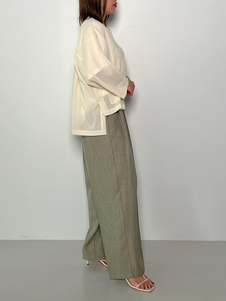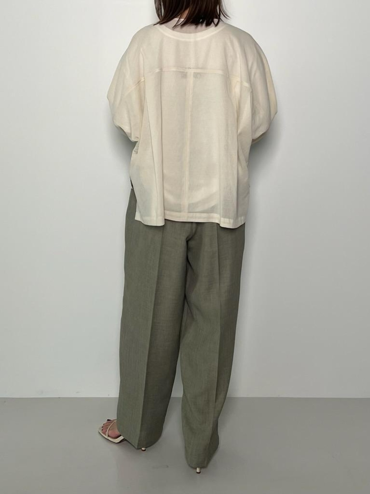 ゆとりがある分、丈はもたつかない様、短丈にしています。前後の丈差もデザインポイントです。