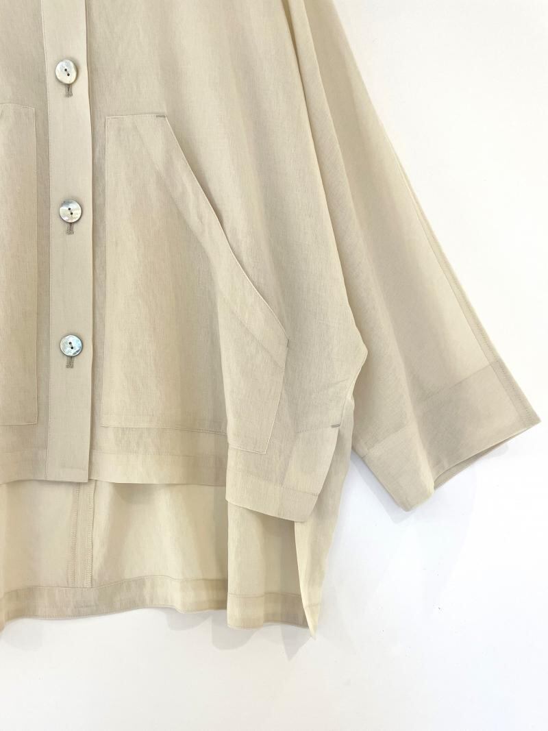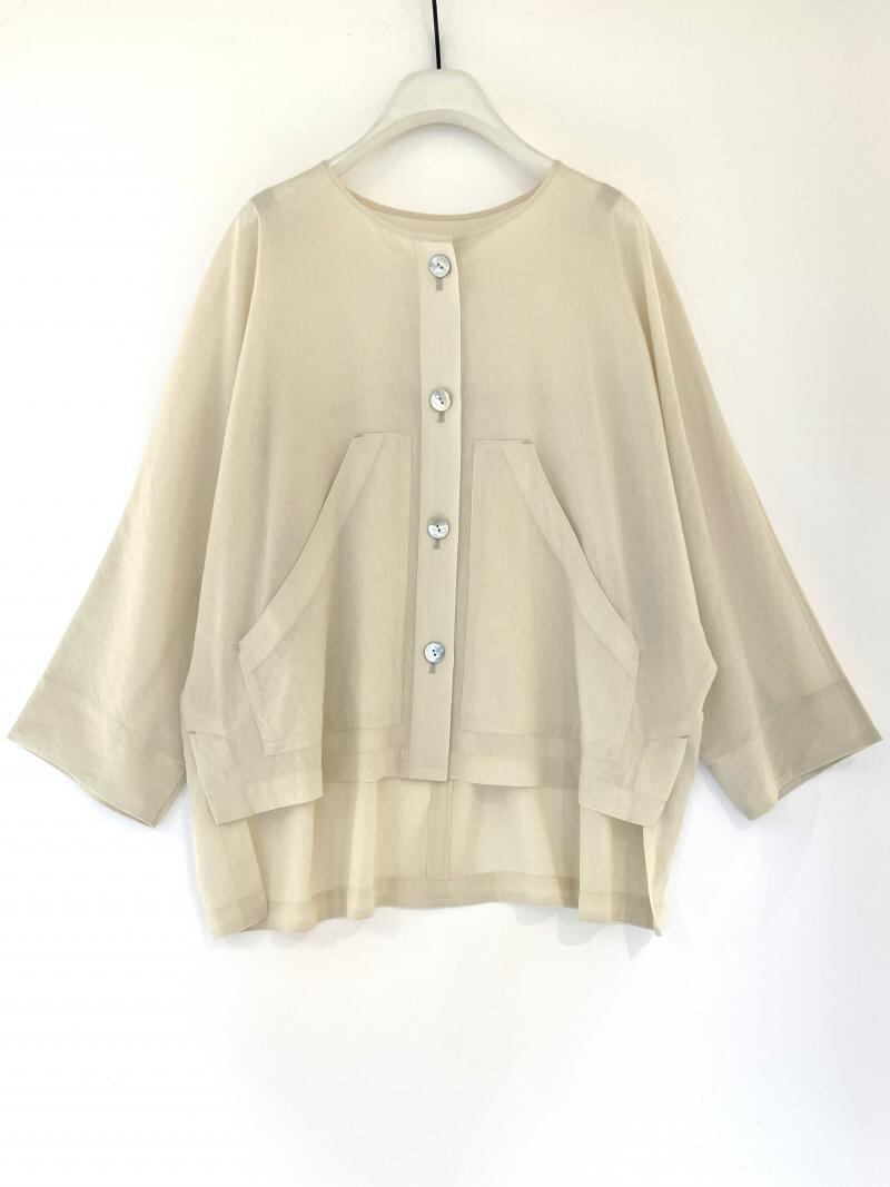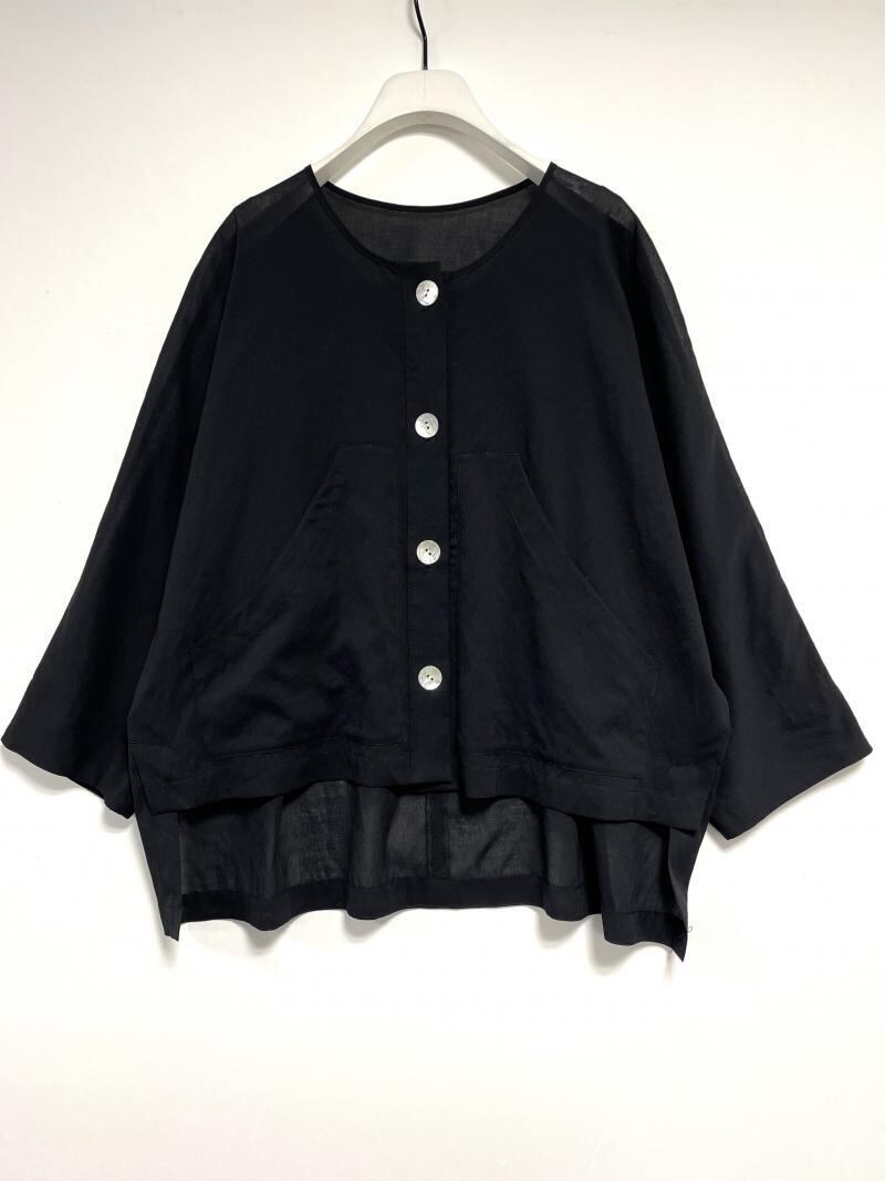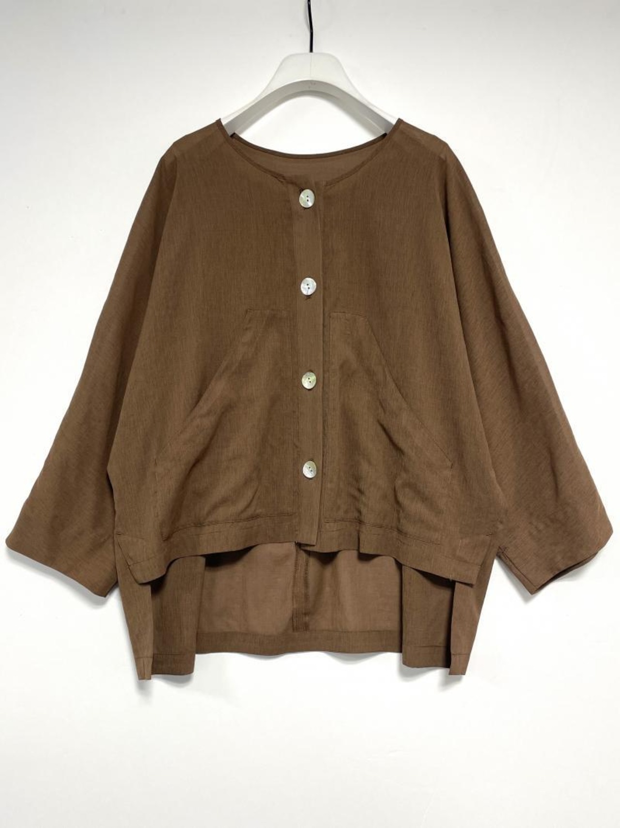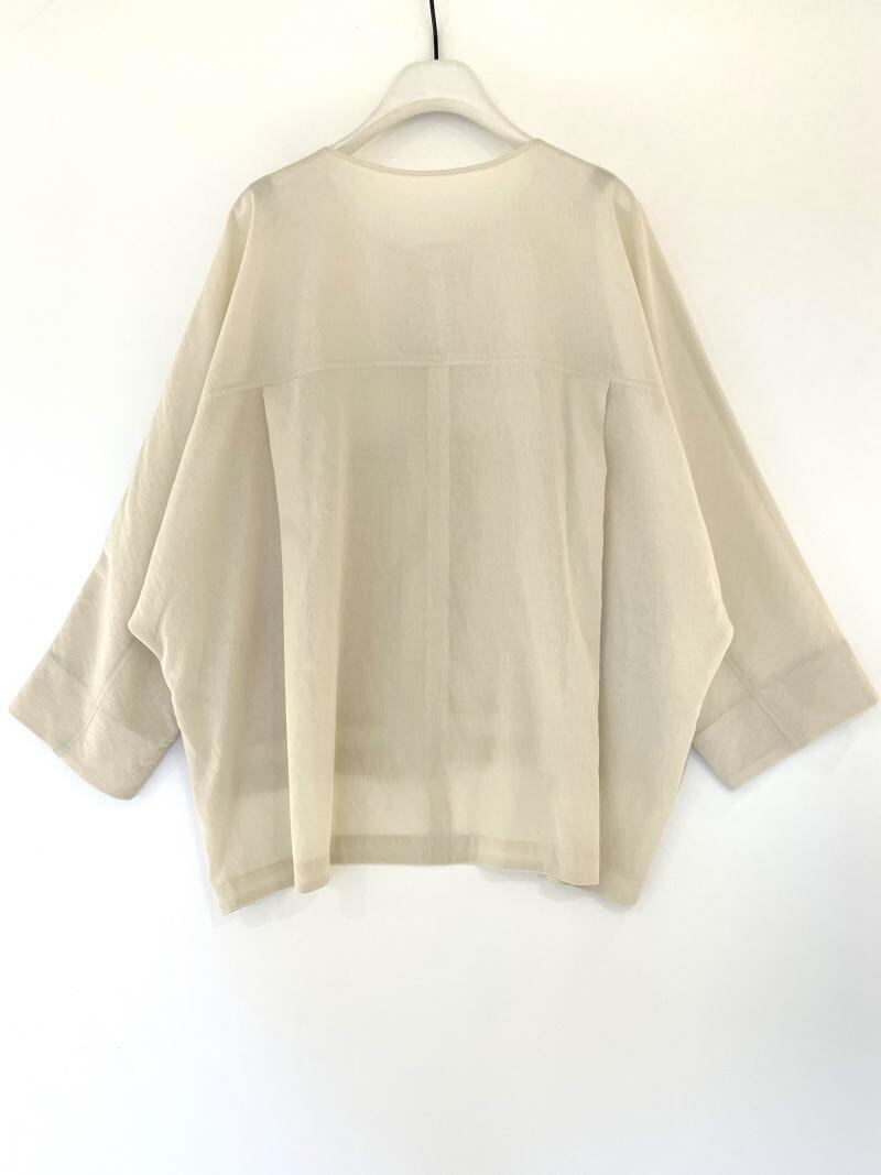 6分丈の袖はドルマンシルエットでゆとりを出し、程よく膨らみのある涼しい印象のジャケットにしています。