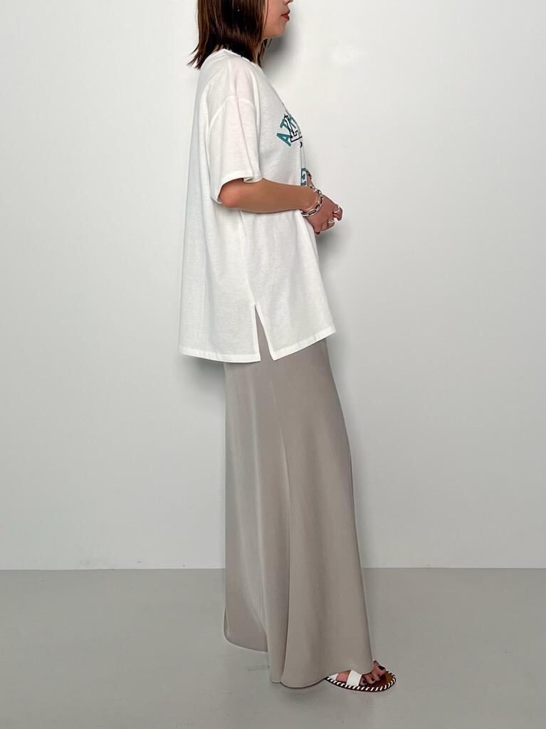また、再度にはスリットを入れているので、少しボリューム感のあるボトム合わせや、ウエストタックインのスタイルもしやすいのも◎。