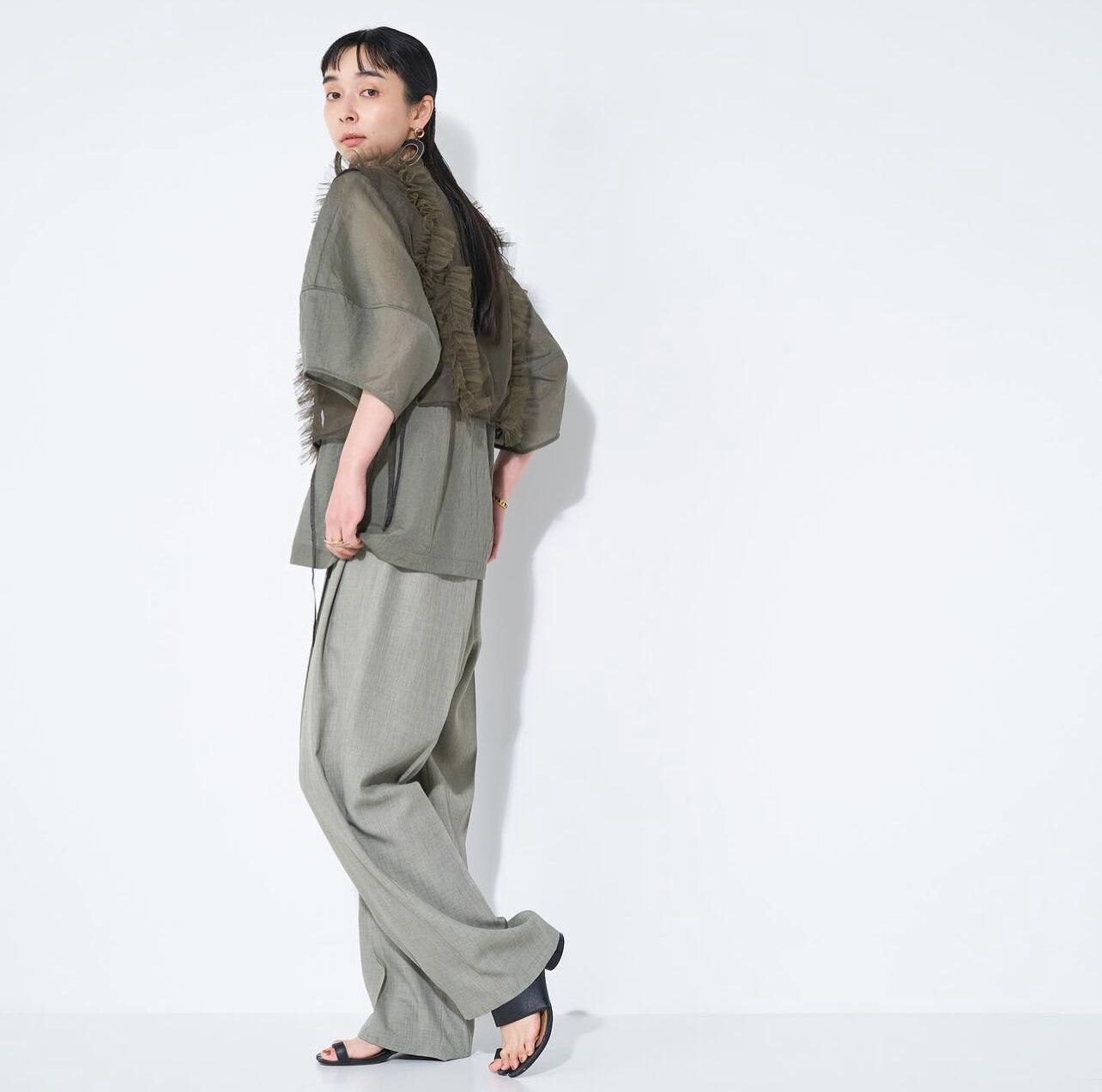 ナチュラルな透け感と程よいフォルムが出るようなハリが特徴の素材を使用。