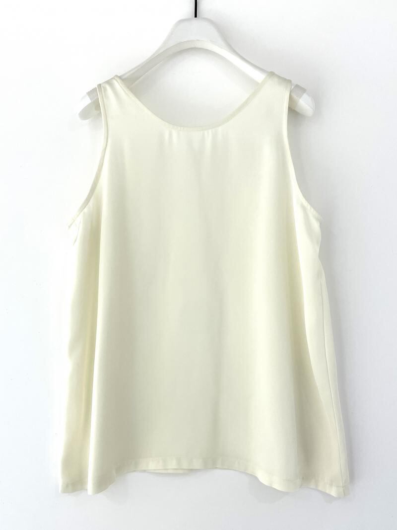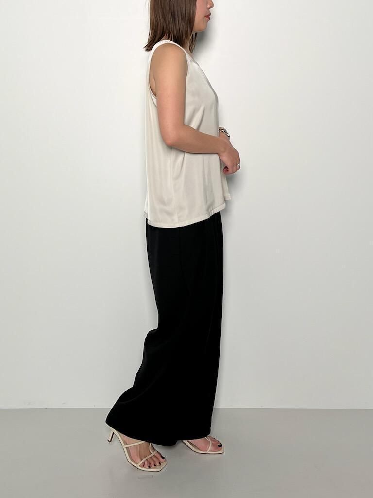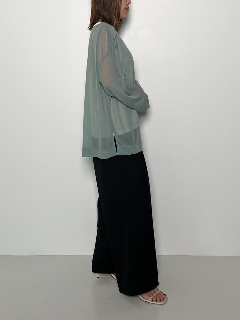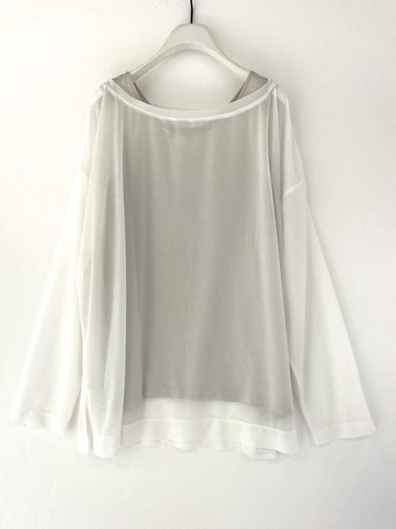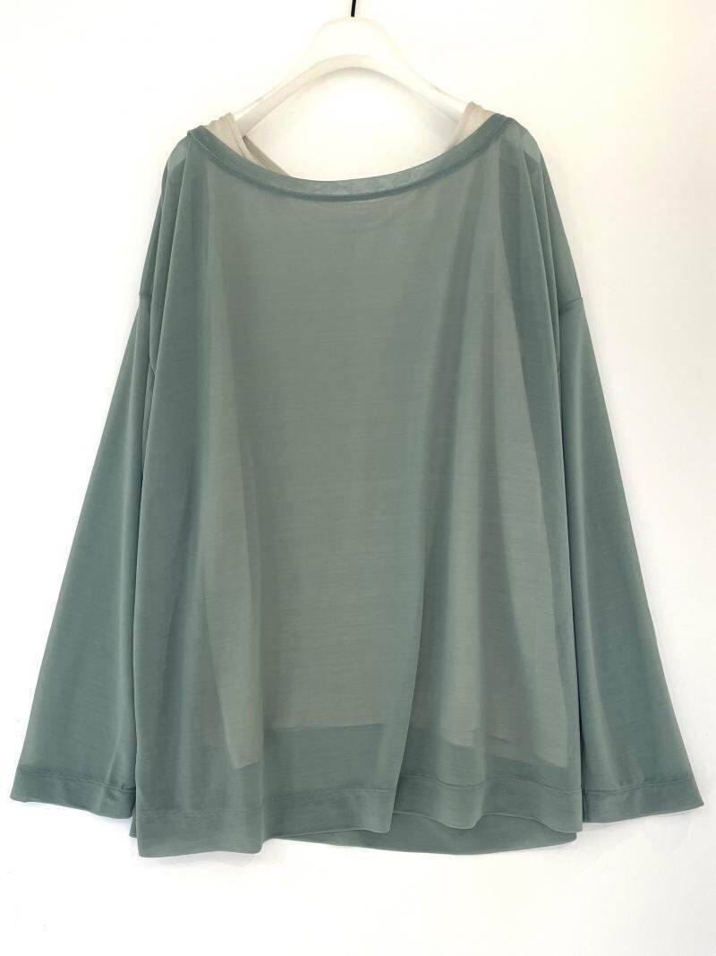 異素材のレイヤードアイテムとセットにしており、生地の重なりと異素材の組み合わせで1枚でもこなれ感のあるデザインに仕上げました。