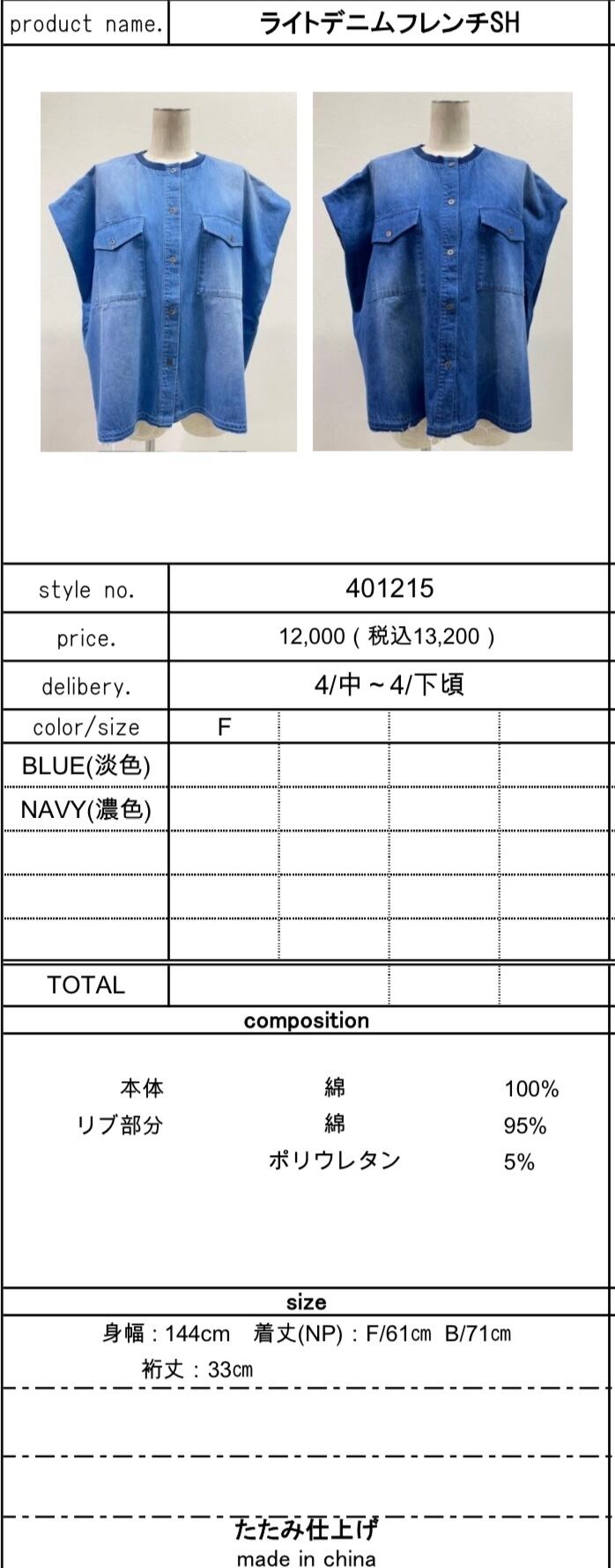 予約販売【 CYAN TOKYO 】ライトデニムフレンチSH (401215) 4月下旬お届け