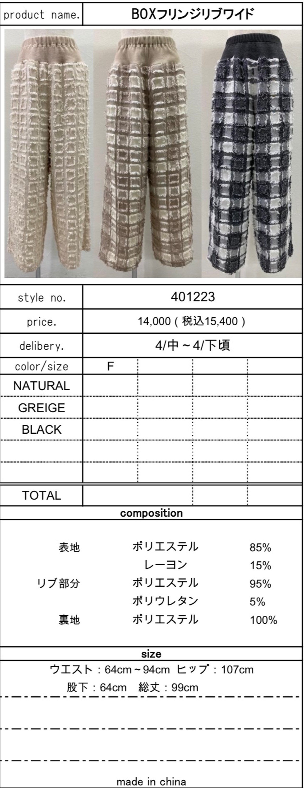 【 CYAN TOKYO 】BOXフリンジリブワイド (401223)