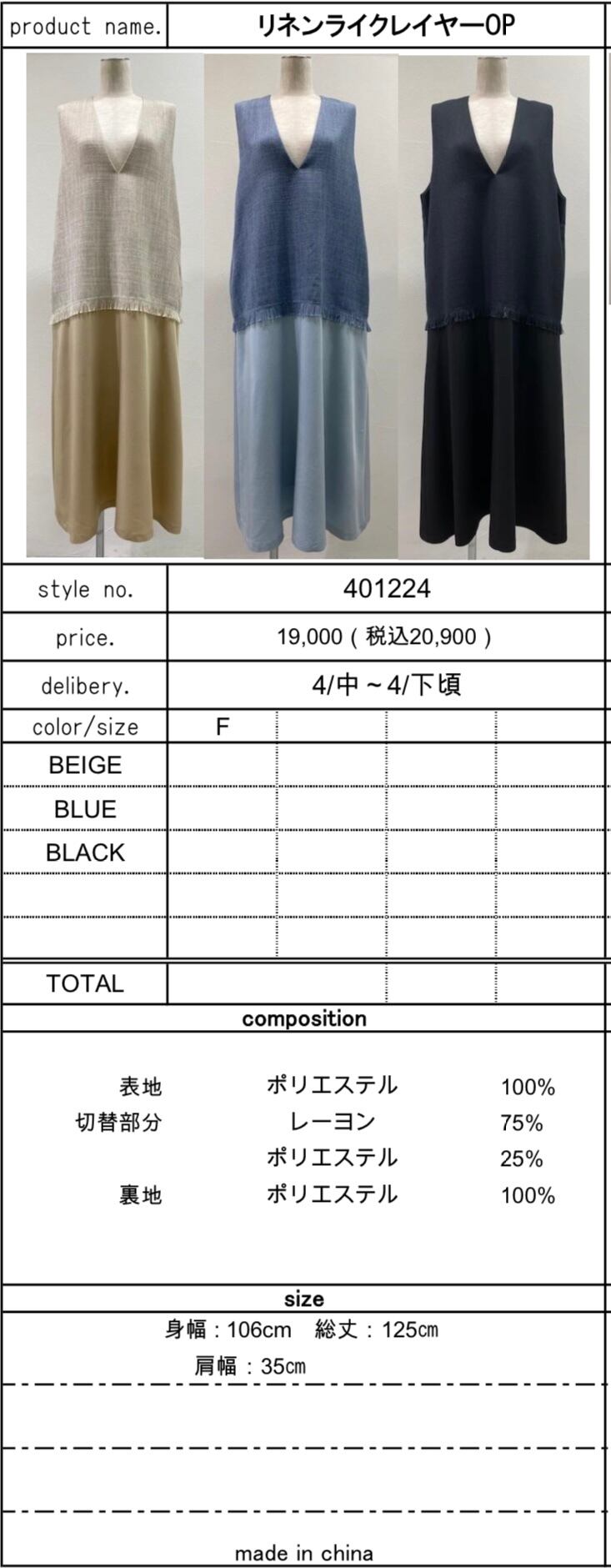 予約販売【 CYAN TOKYO 】リネンライクレイヤーOP (401224) 4月下旬お届け