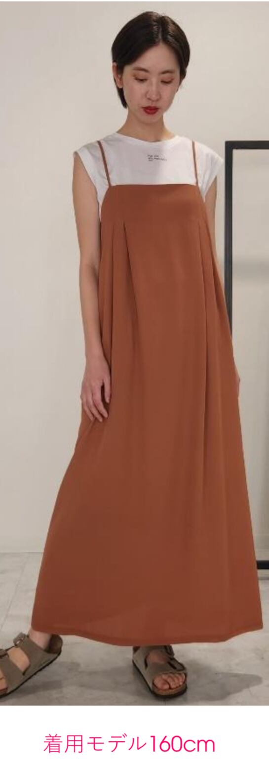 Iラインのすっきりとしたシルエットが、女性らしいキャミワンピース。