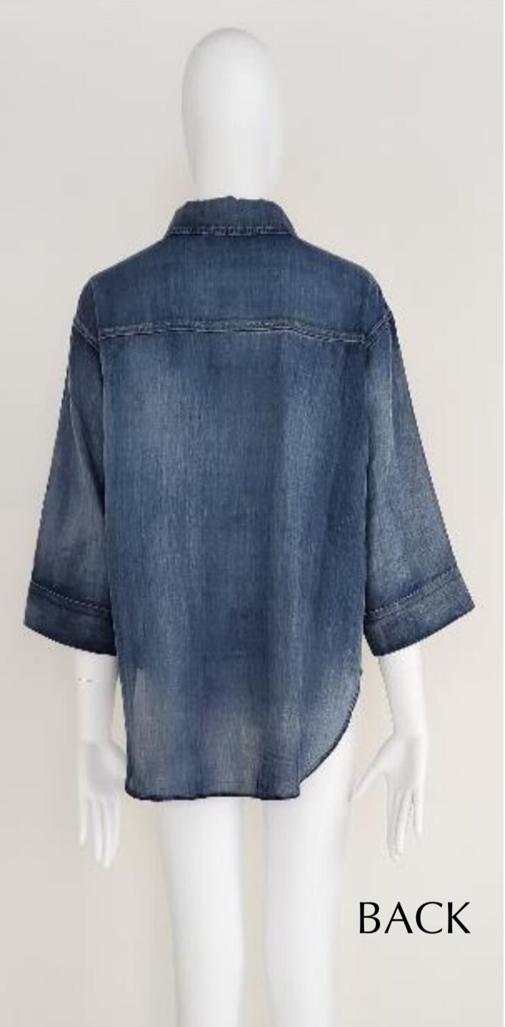 一見ノーマルなデニムシャツの様でありながら、シフォンの様な独特なシアー感が特徴的な