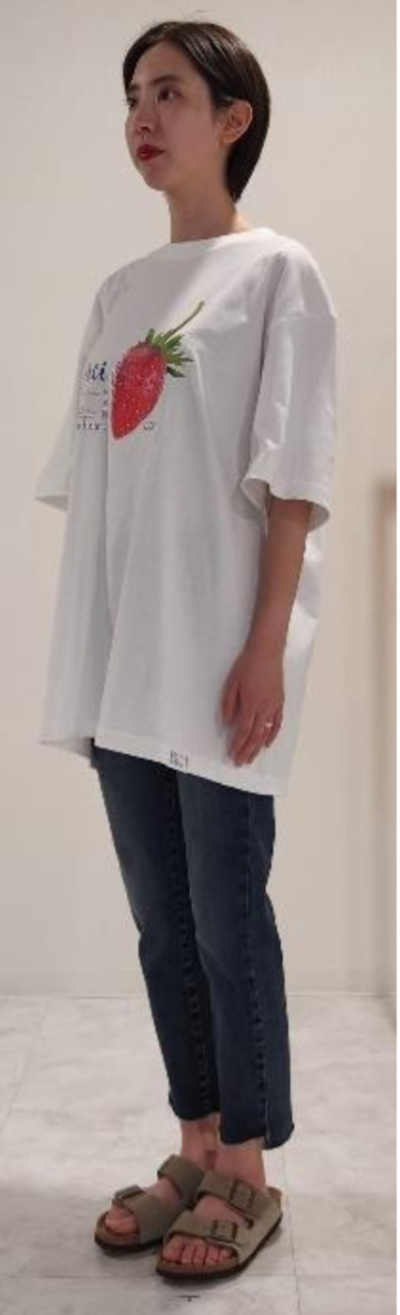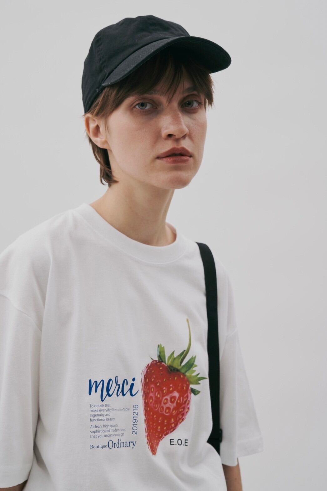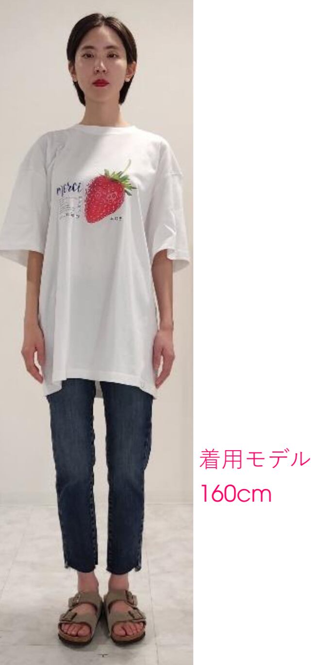 イズ感で、フロントにはフレッシュなストロベリーとタイポグラフィックのコンビネーション