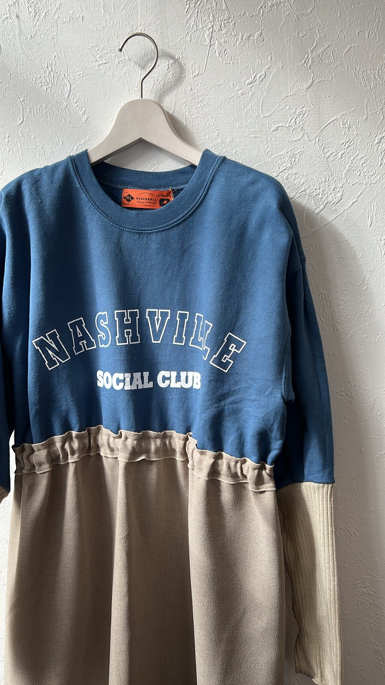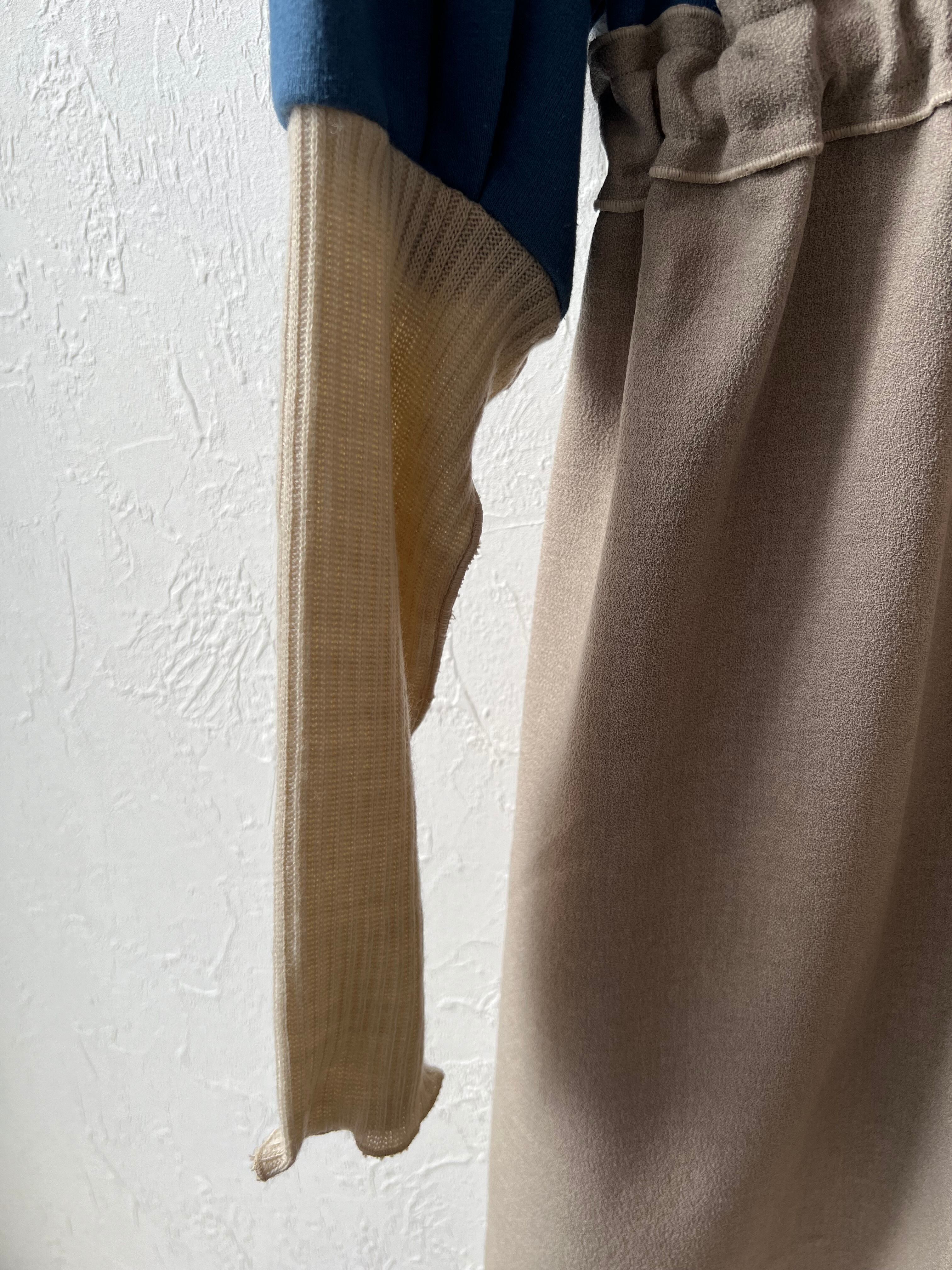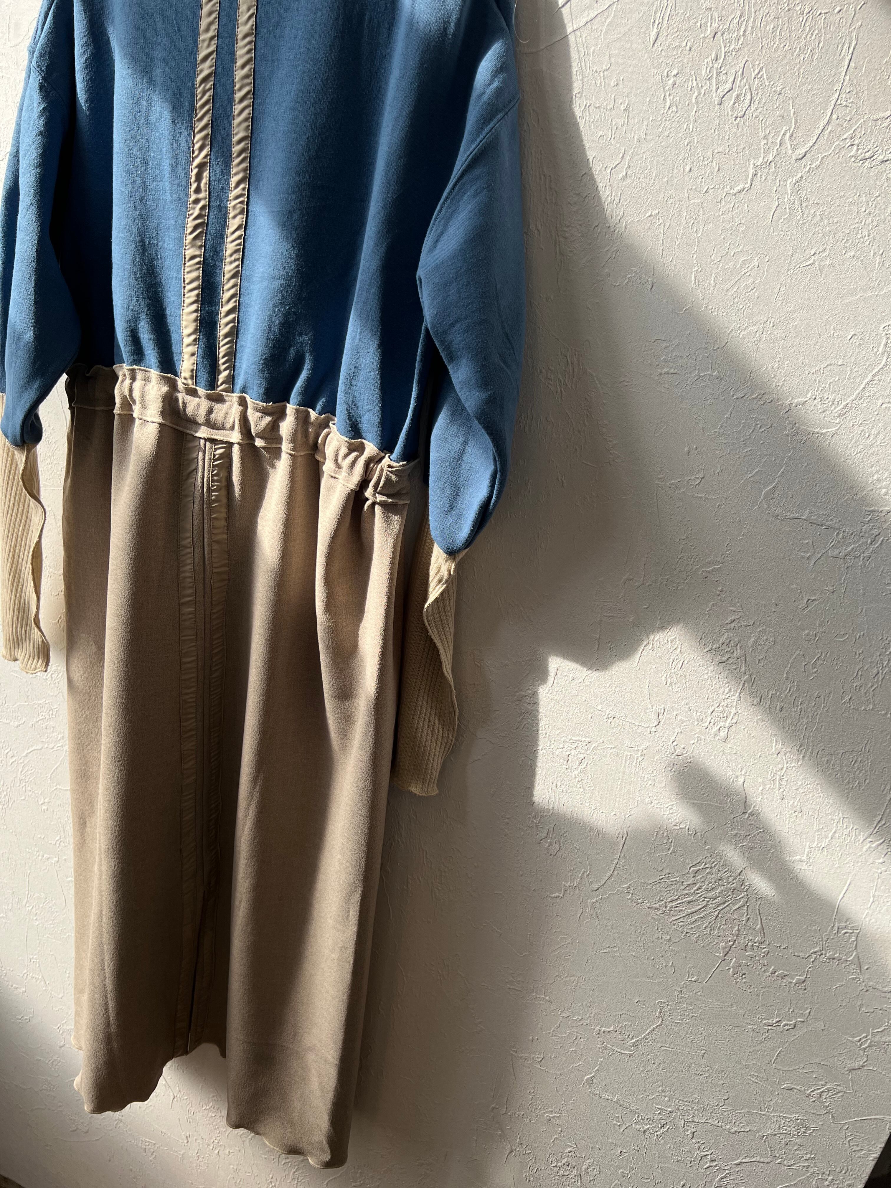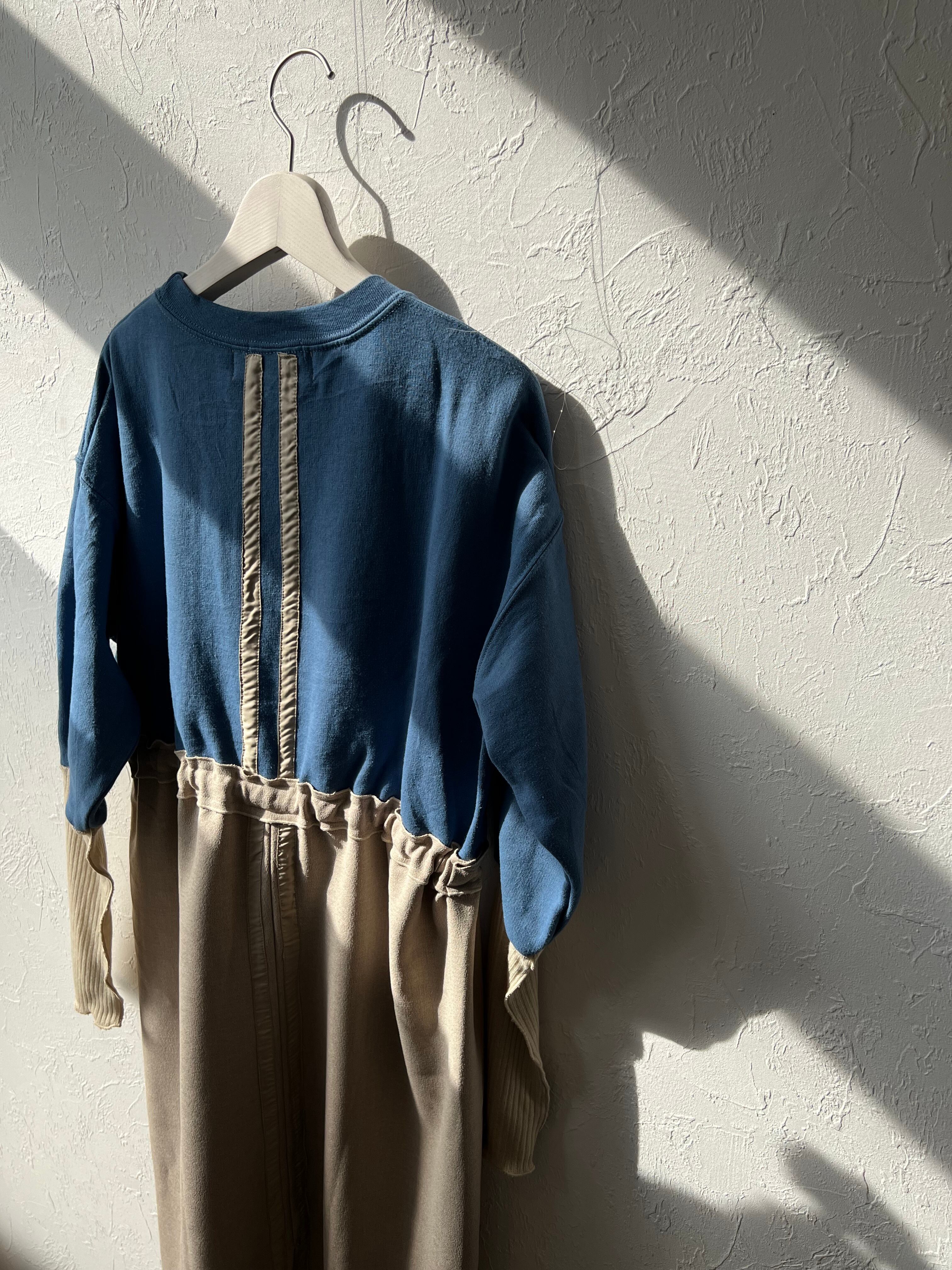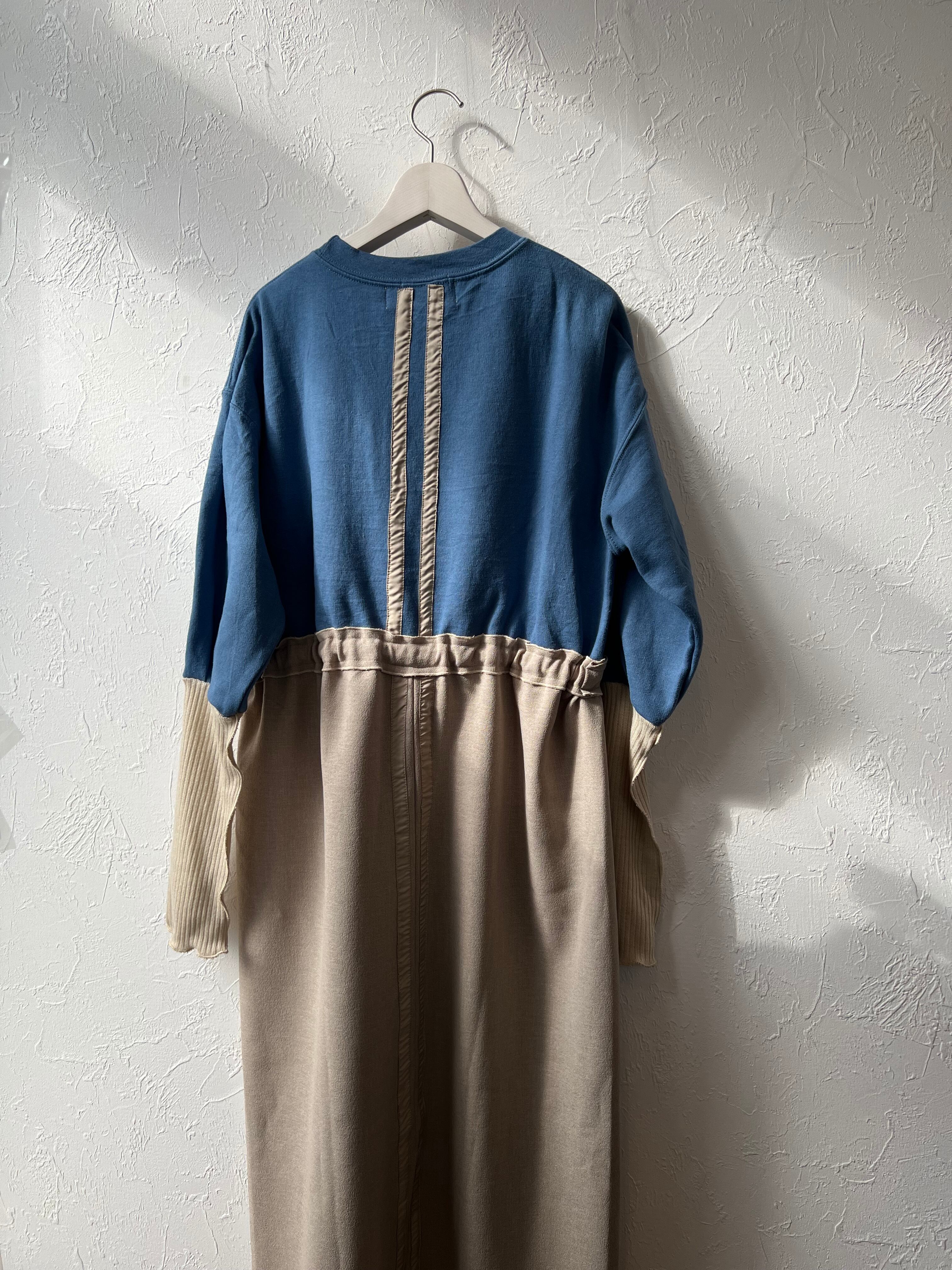 ユーズドの裏起毛スウェットを使用して製作されたドッキングワンピースです。